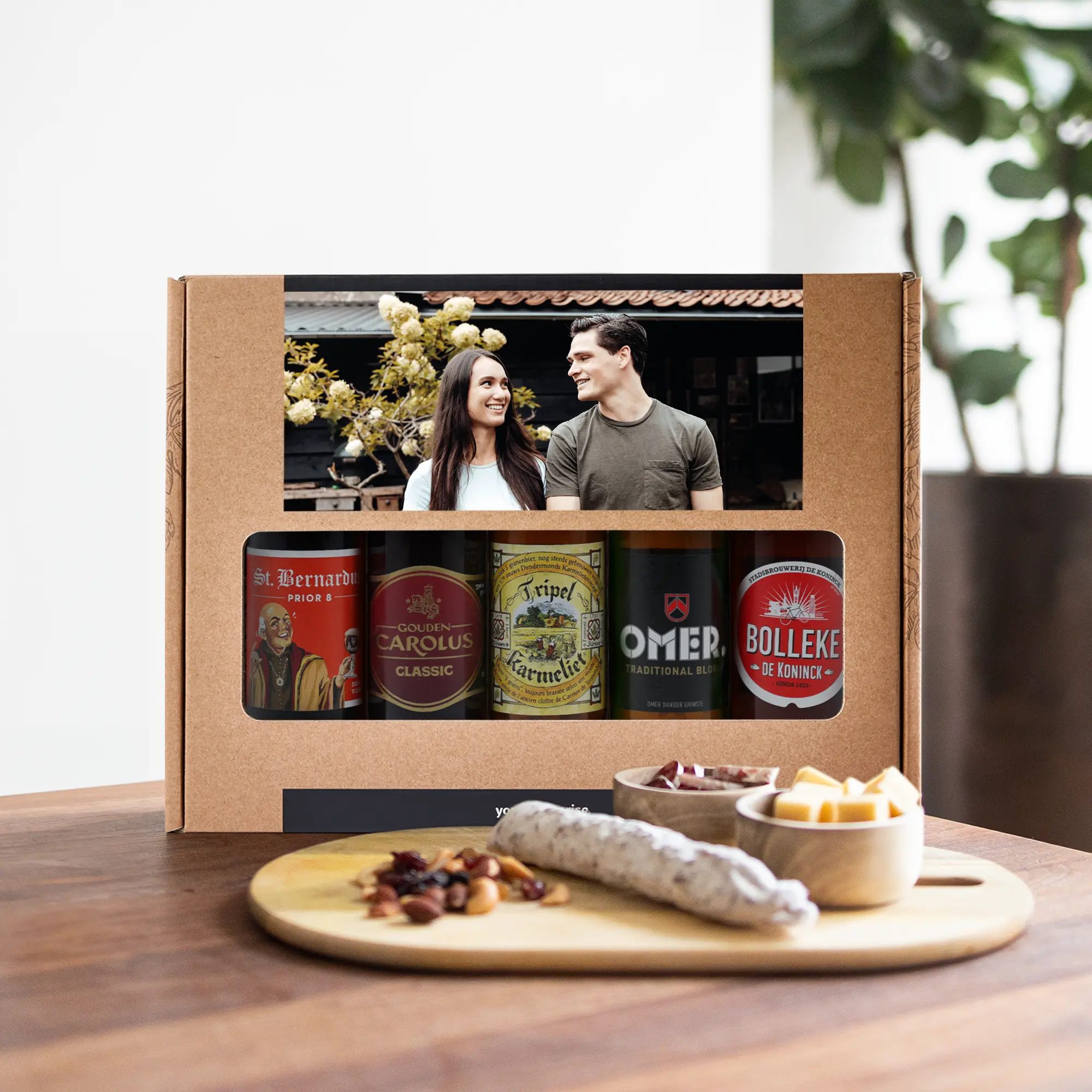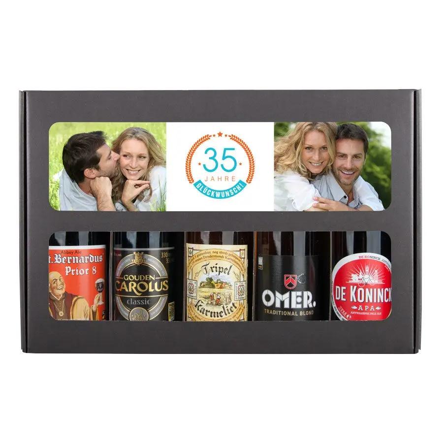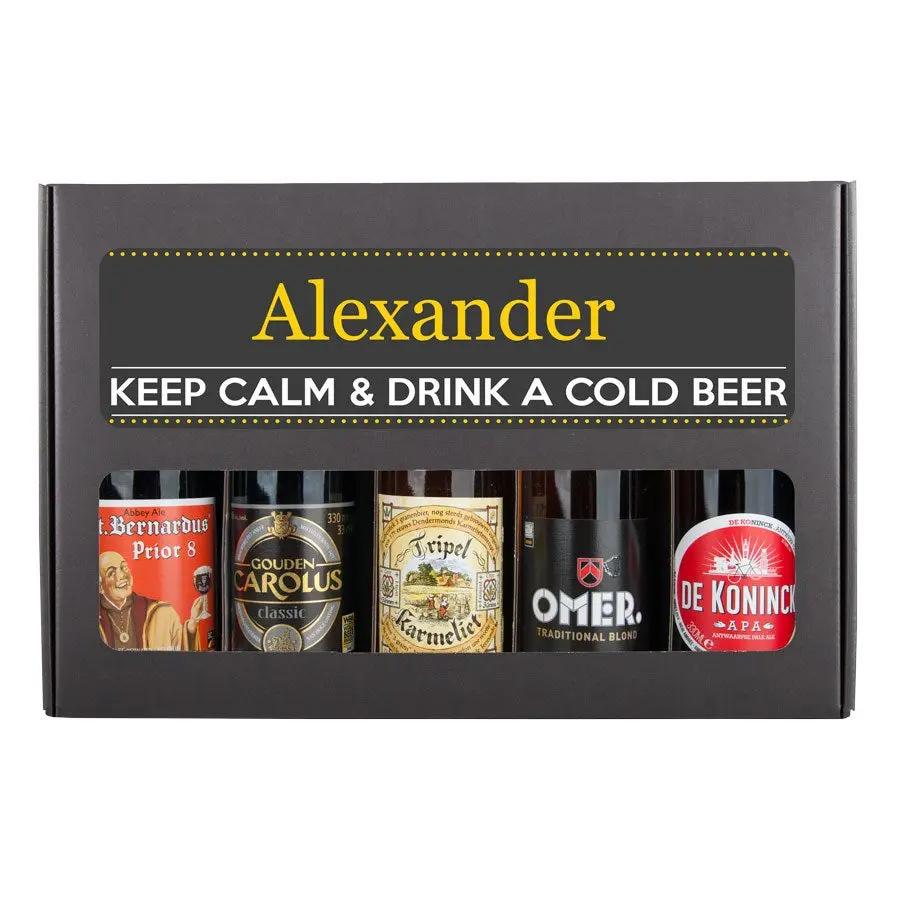 Ein köstliches Biergeschenkset mit Ihrem eigenen Foto und Text, gefüllt mit 5 verschiedenen belgischen Bieren. Mit individuellem Design!