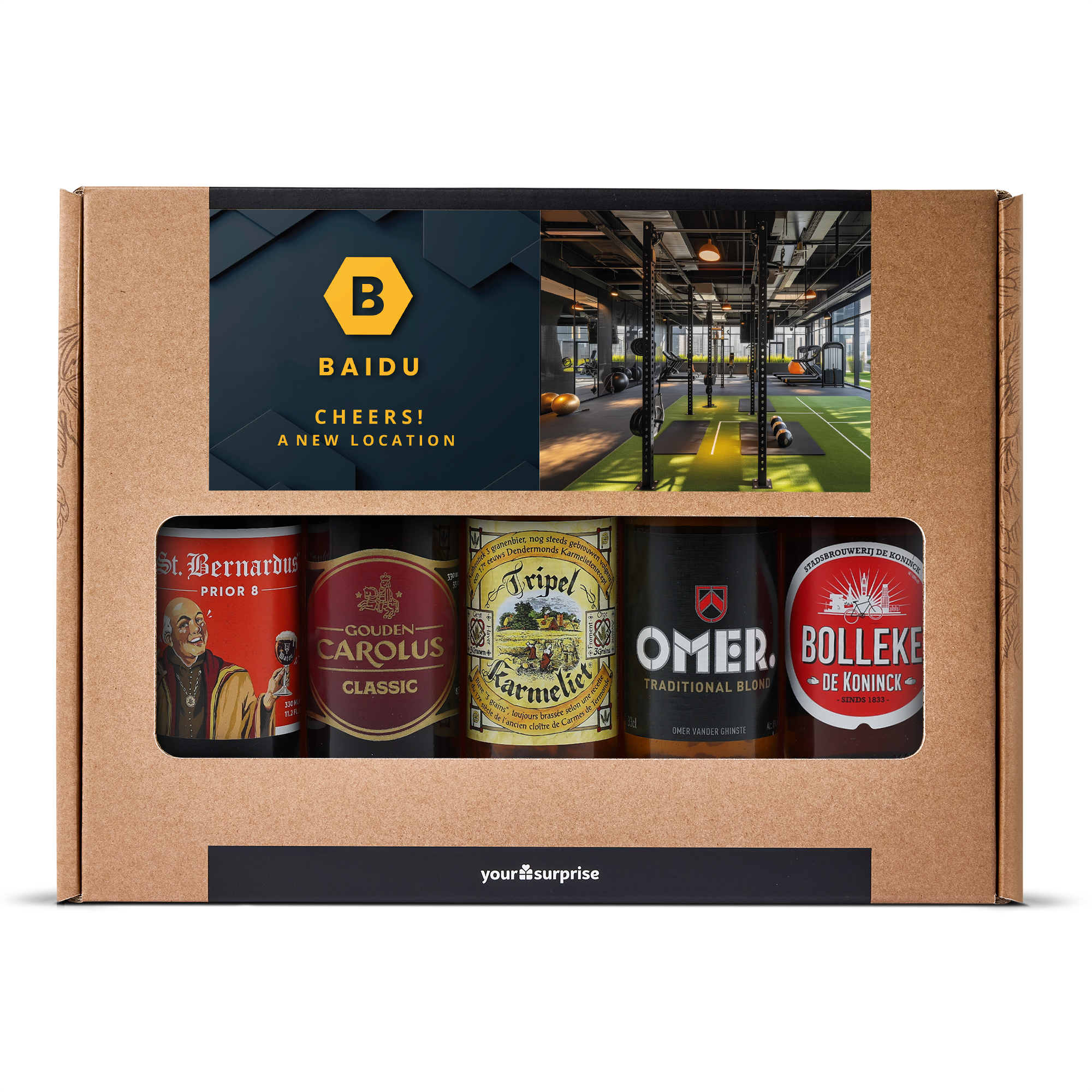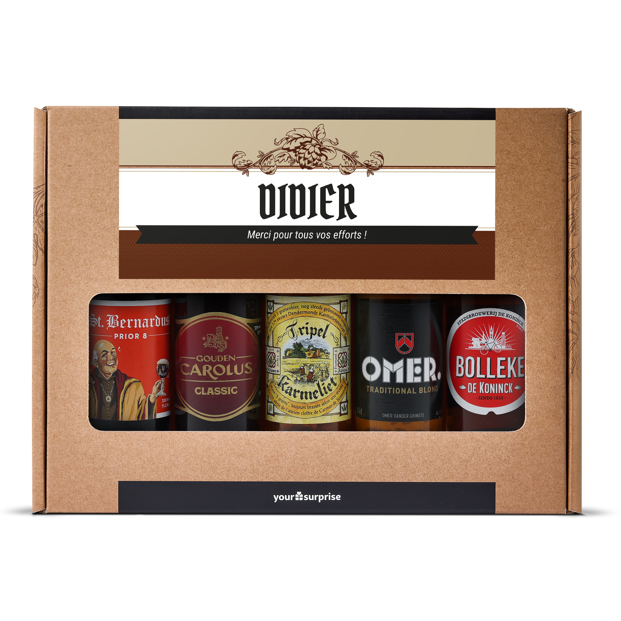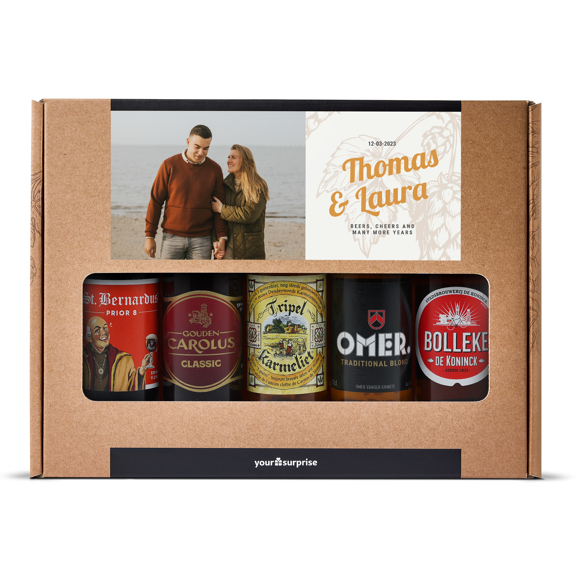 Ein köstliches Biergeschenkset mit Ihrem eigenen Foto und Text, gefüllt mit 5 verschiedenen belgischen Bieren. Mit individuellem Design!