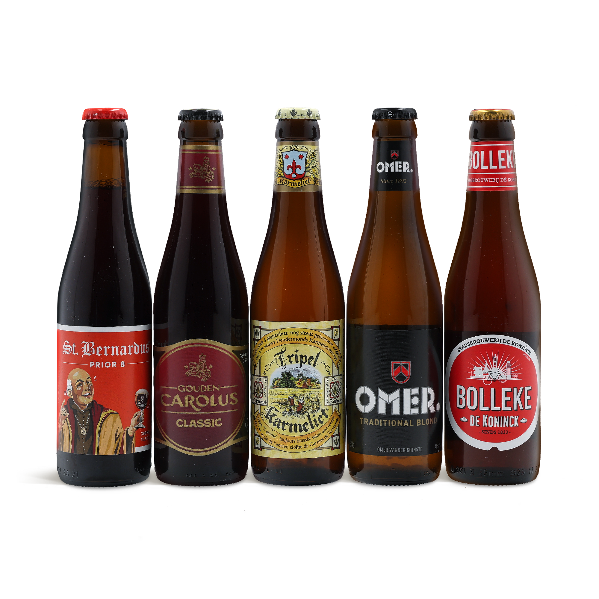 - Inhalt des Geschenksets: Gouden Carolus Classic (8,5 %), St. Bernardus (8,0 %), Omer (8,0 %), Tripel Karmeliet (8,0 %), De Koninck (5,0 %).