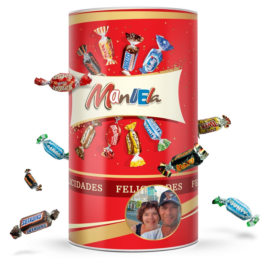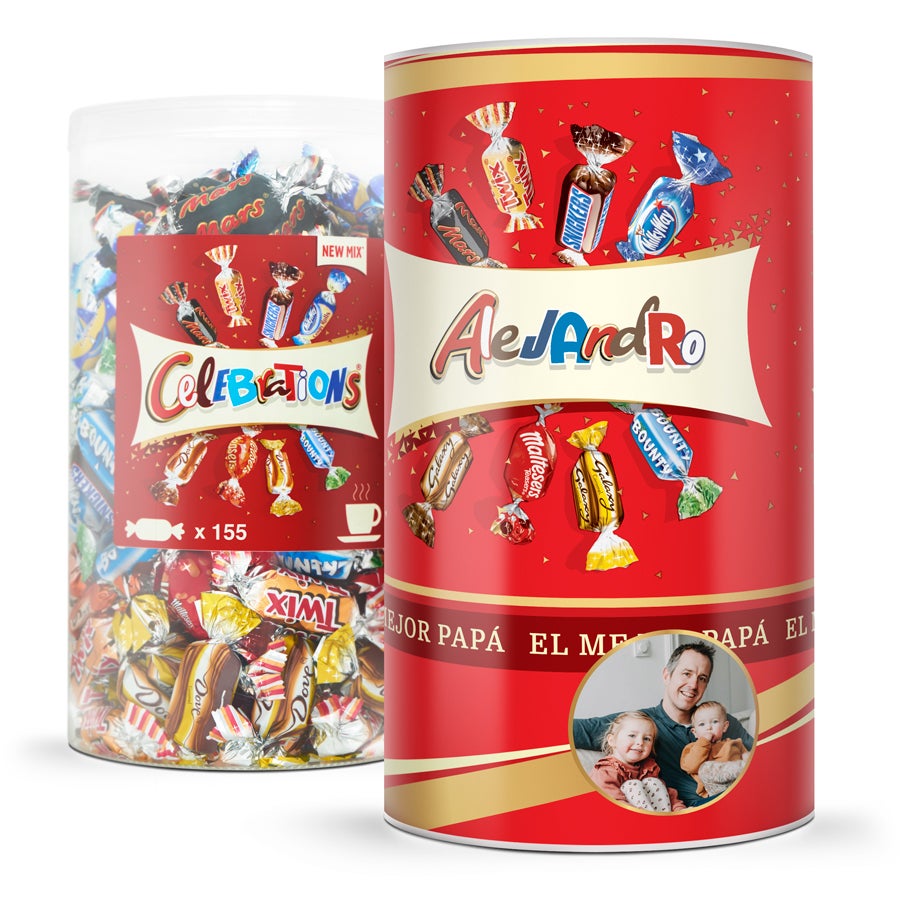 Überraschen Sie Ihre Liebsten mit einer Tube gefüllt mit einer Auswahl an Celebrations-Pralinen und personalisieren Sie sie mit einem Foto und Text Ihrer Wahl!
