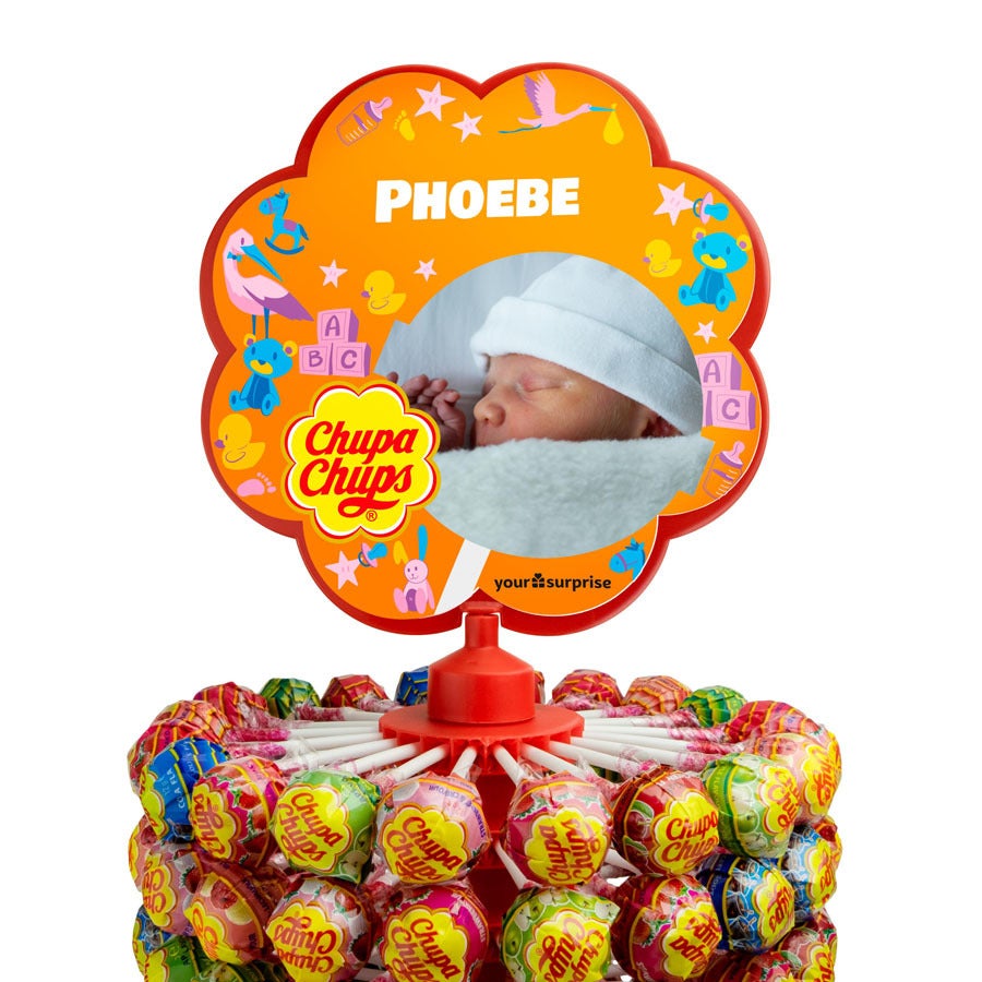 Ein leckeres Geschenk mit nicht weniger als 200 Chupa Chups Lutschern! Gestalten Sie Ihren jetzt mit einem Foto, Namen und/oder Text Ihrer Wahl.