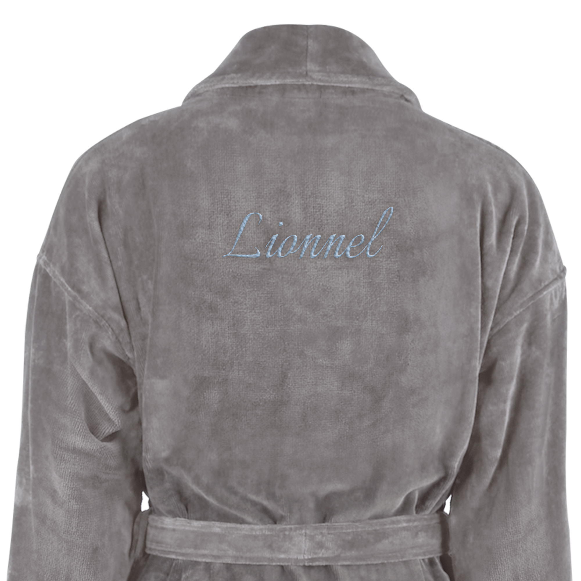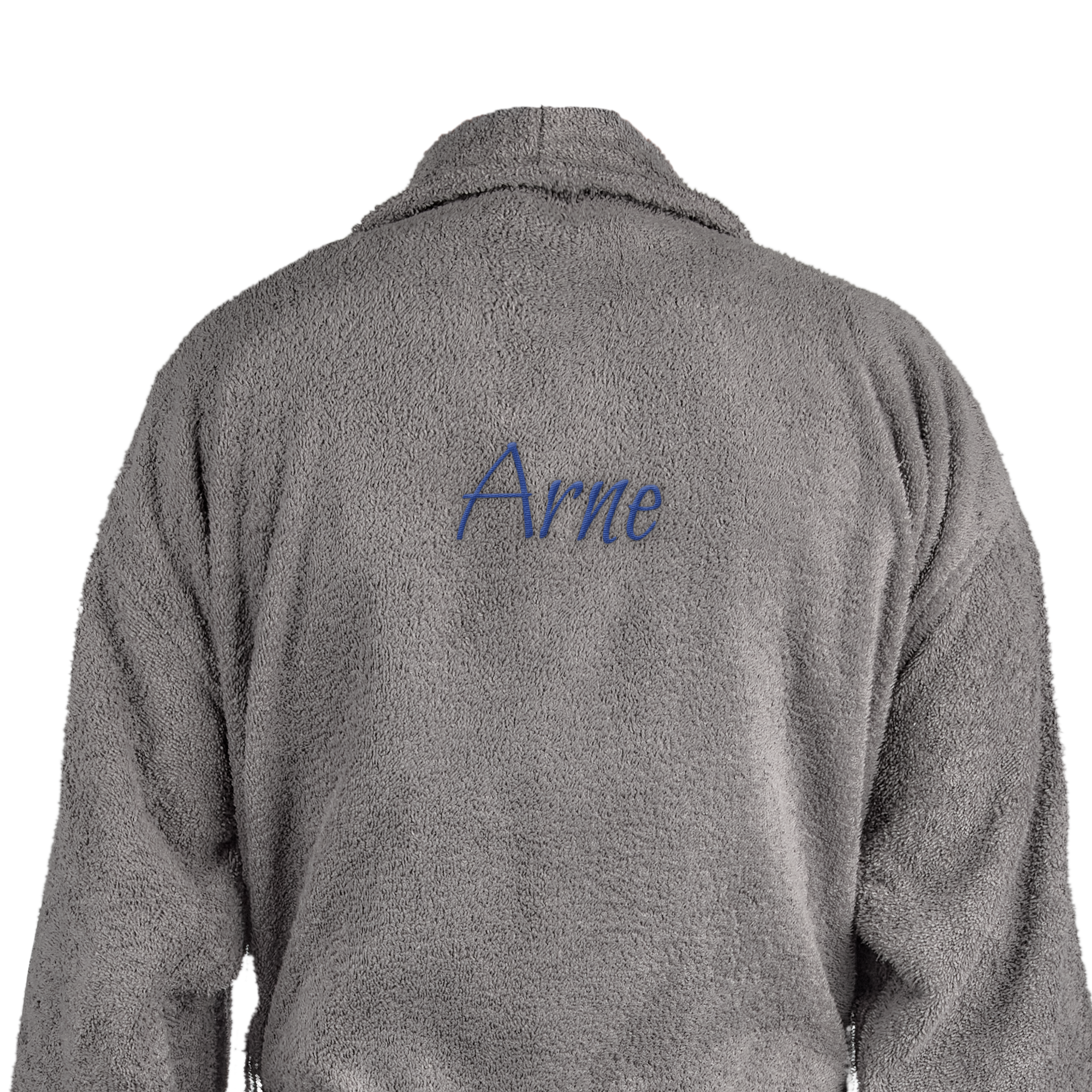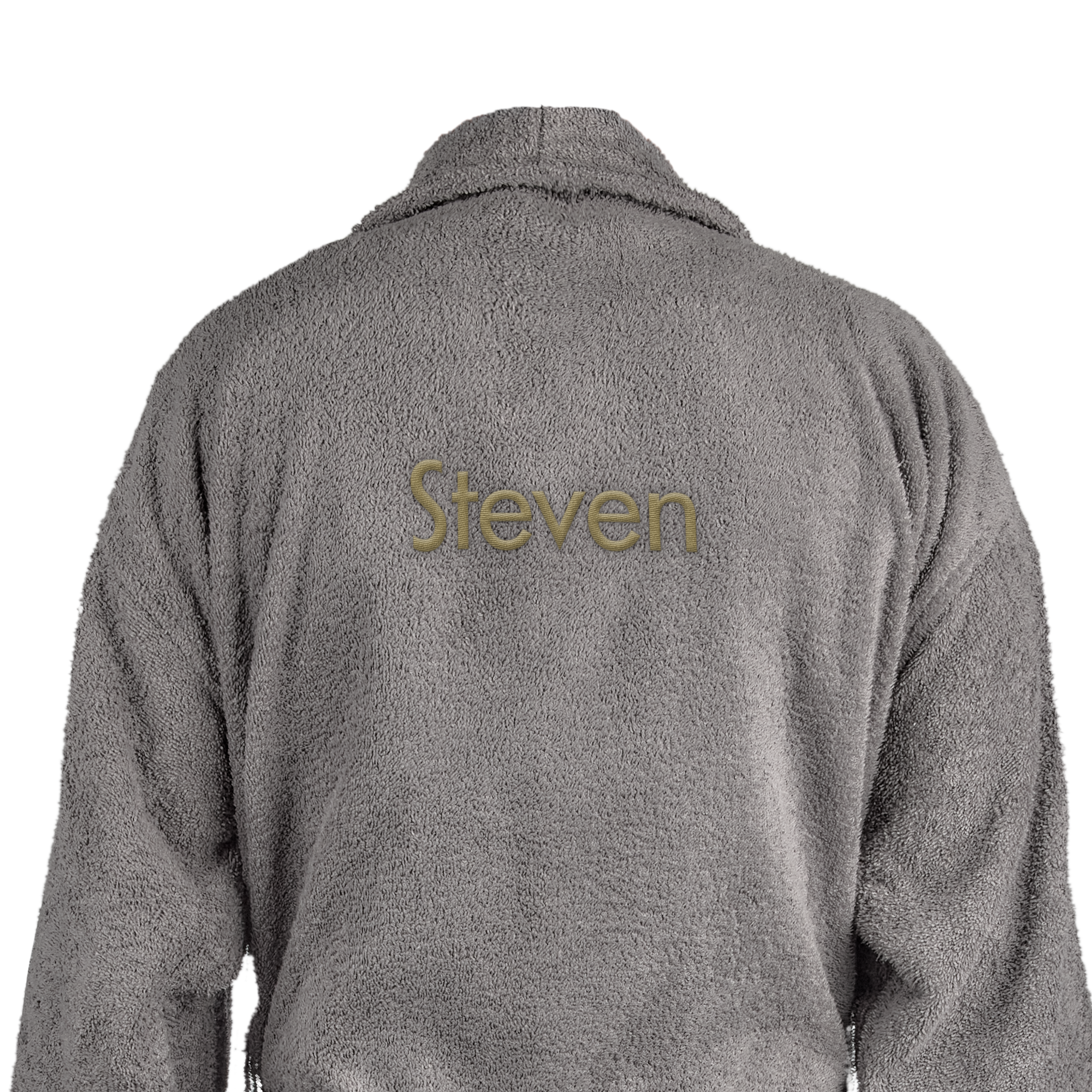 Ein sehr weicher und origineller Bademantel, bestickt mit Ihrem eigenen Text oder Namen! Ein klassischer Bademantel für Herren aus 100 % Baumwollfrottee.