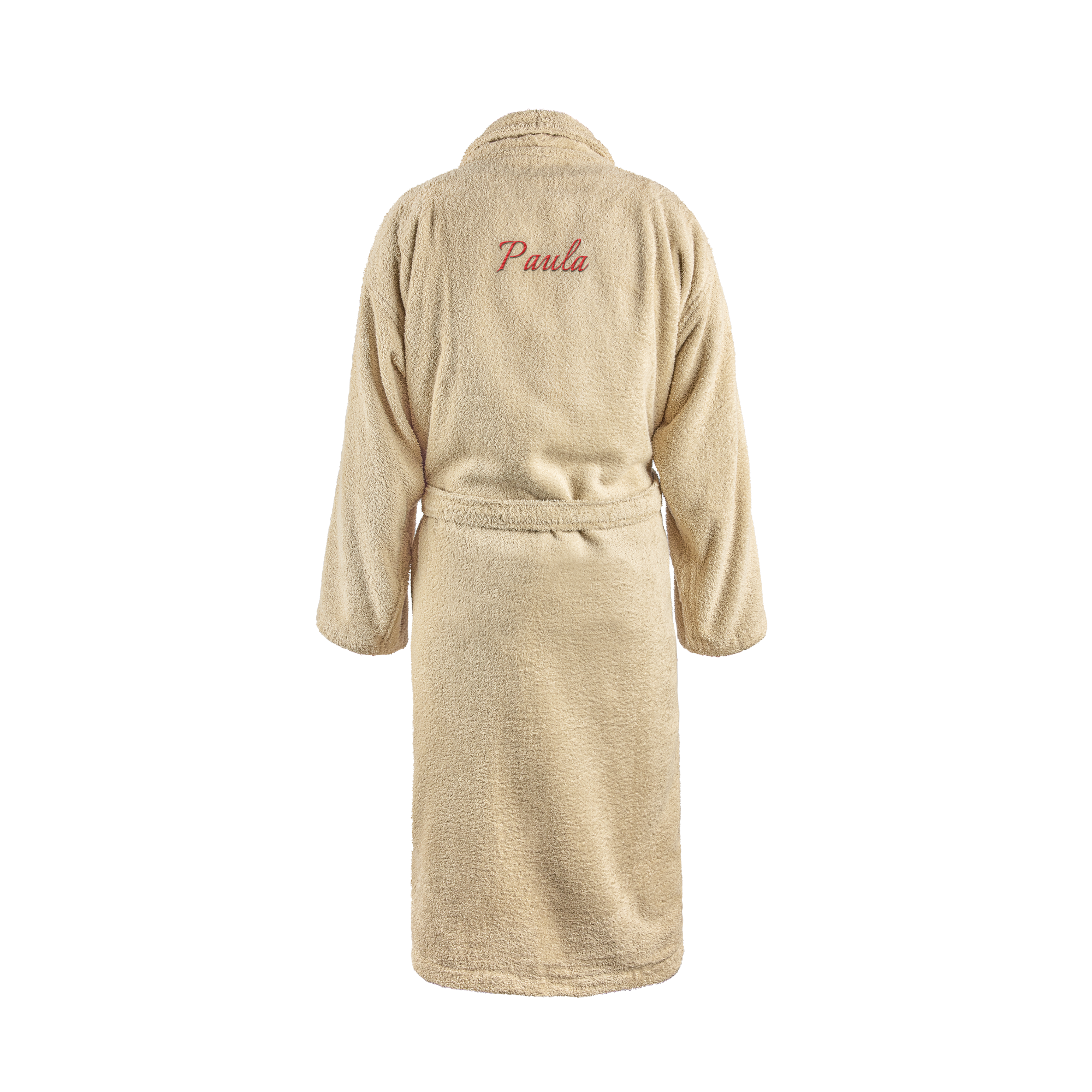 Mehr zum Bademantel:Farbe: BeigeGröße: L/XLMaterial: 100% weiche Frottee-BaumwolleQualität: 380 gr/m2Modell: BasicLänge: 120 cmSchulterbreite: 21 cmRückenbreite: 65 cmÄrmellänge: 56 cmPersonalisierung: mit Namen oder Text auf der RückseitePersonalisierungsmethode: schöne StickereiZusätzliche Informationen: antistatisches und atmungsaktives GewebeWaschanleitung: bei 40 °C waschen