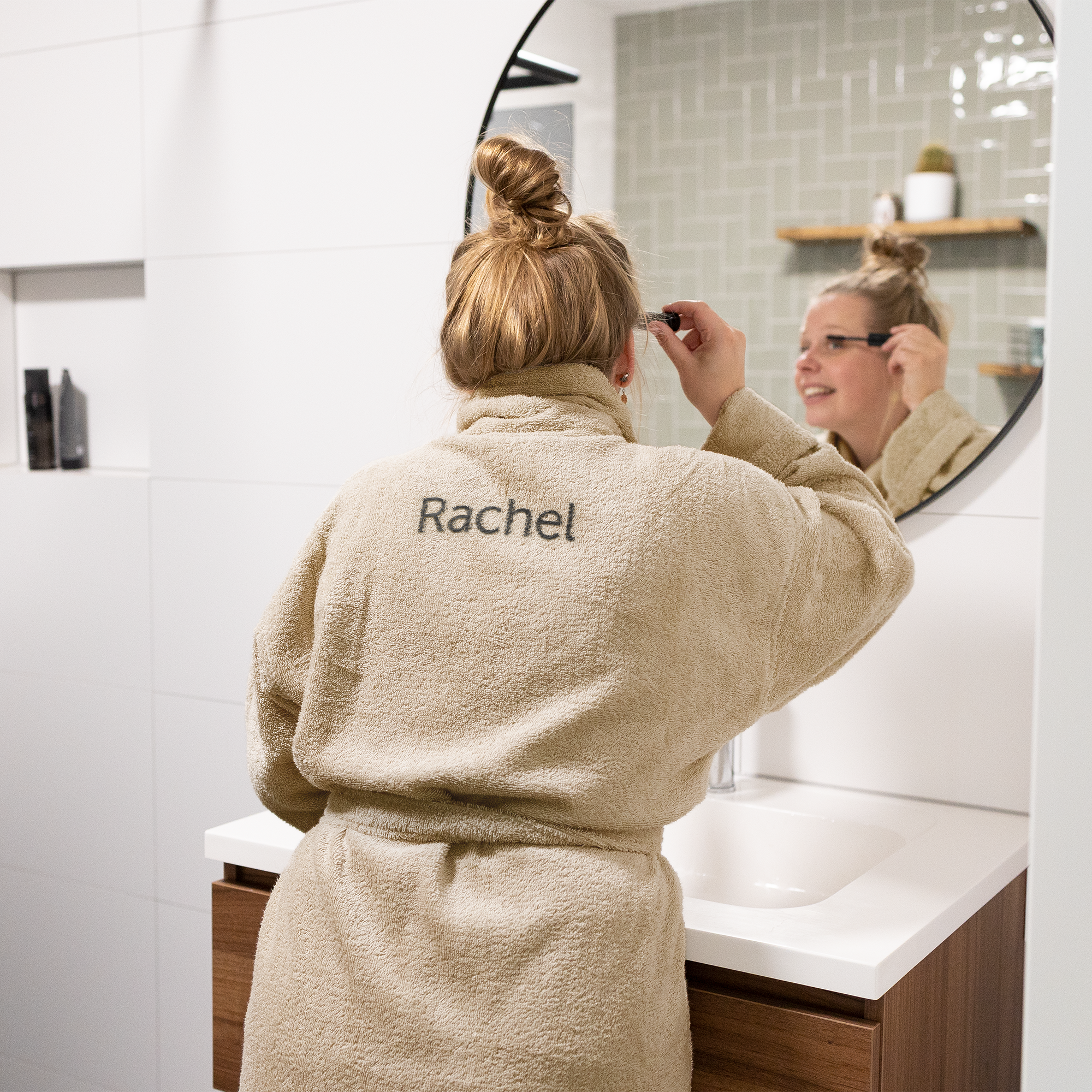 Personalisierter Bademantel für Damen, bestickt mit dem Namen oder Text Ihrer Wahl. Gestalten Sie jetzt Ihren!