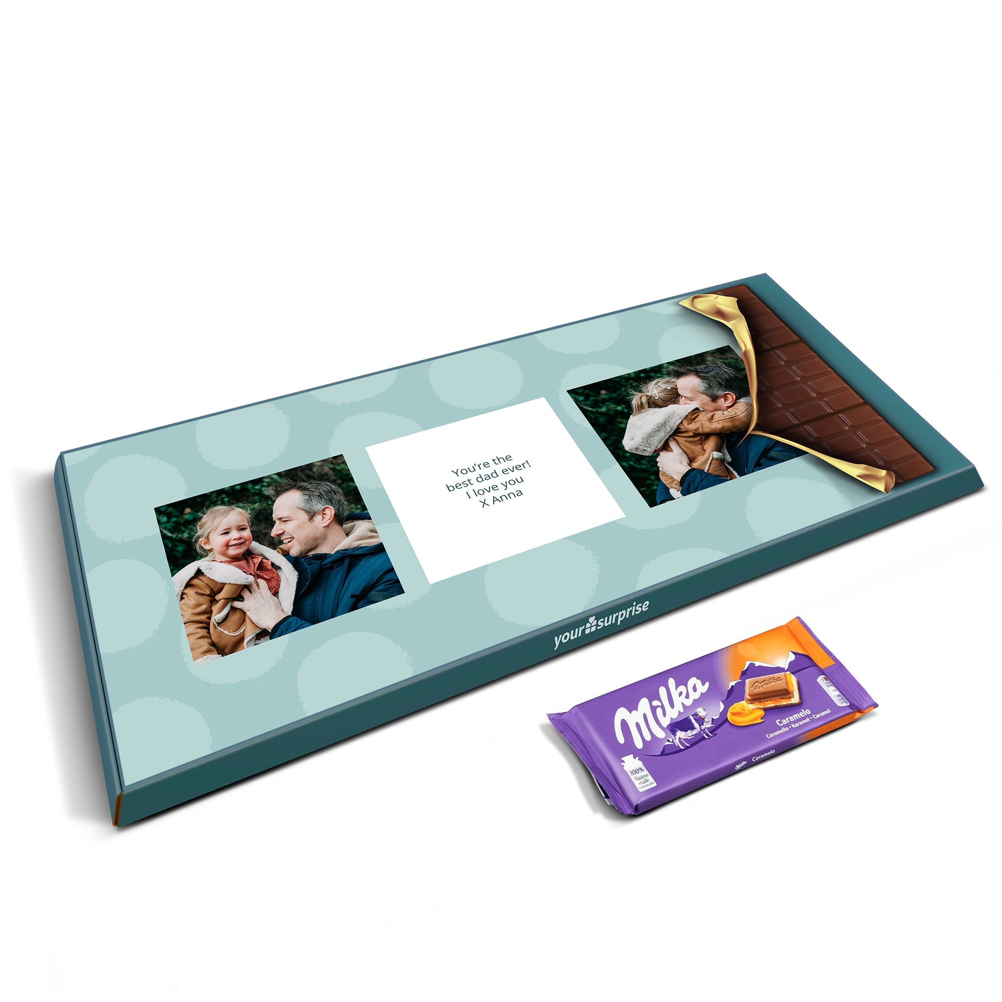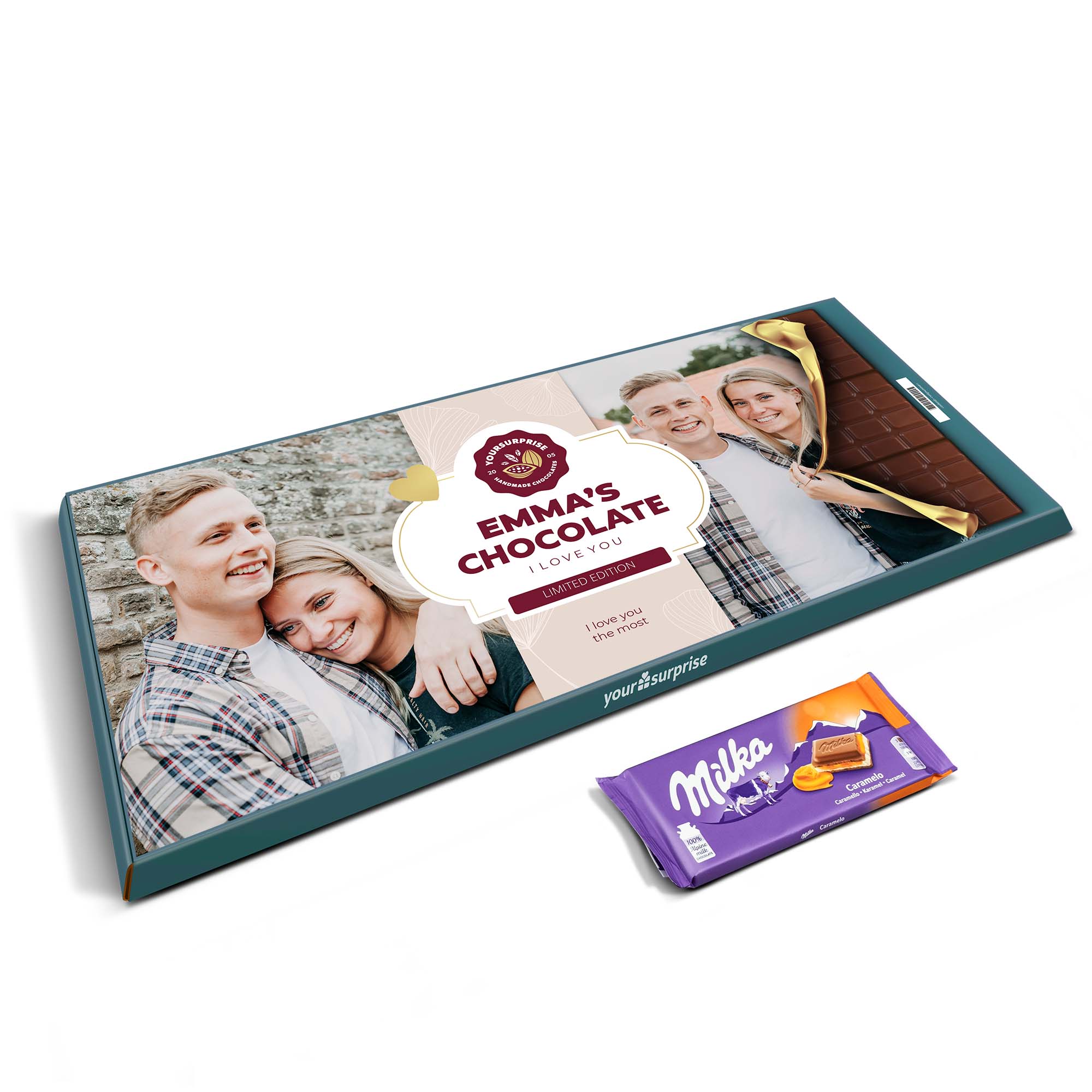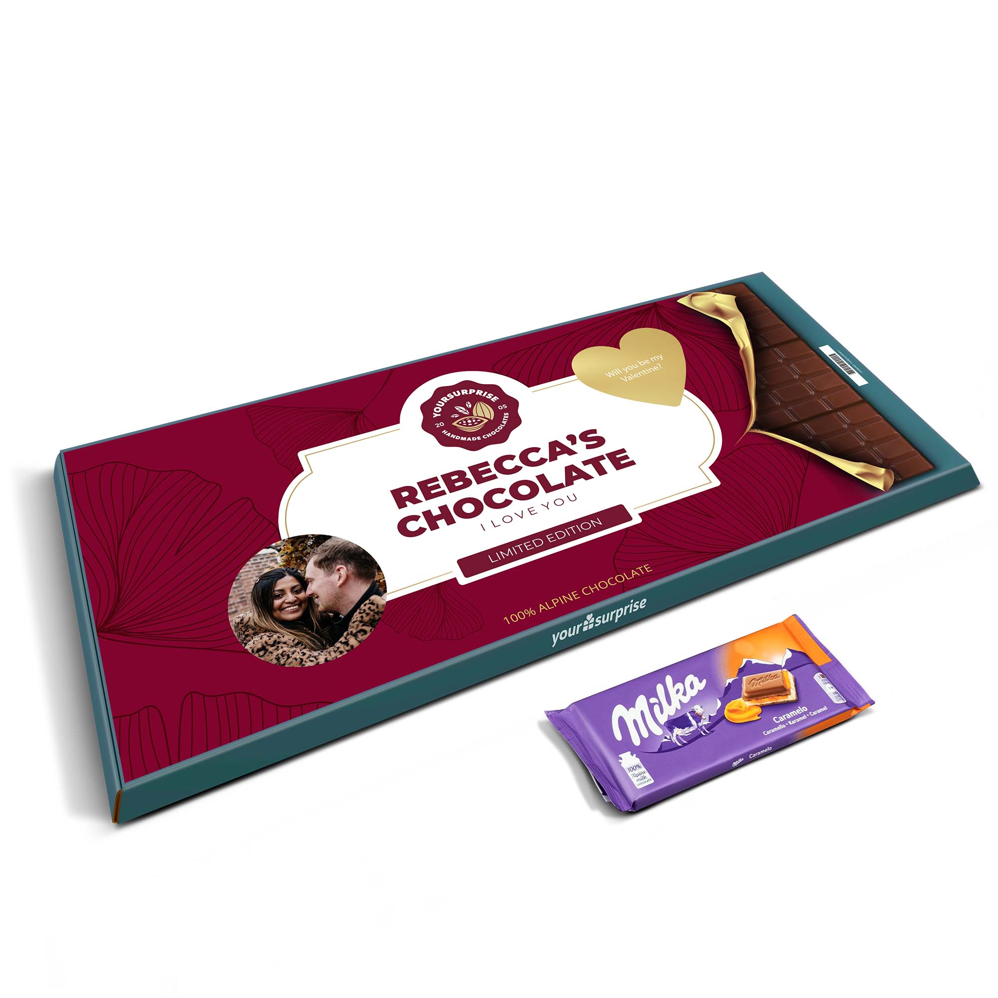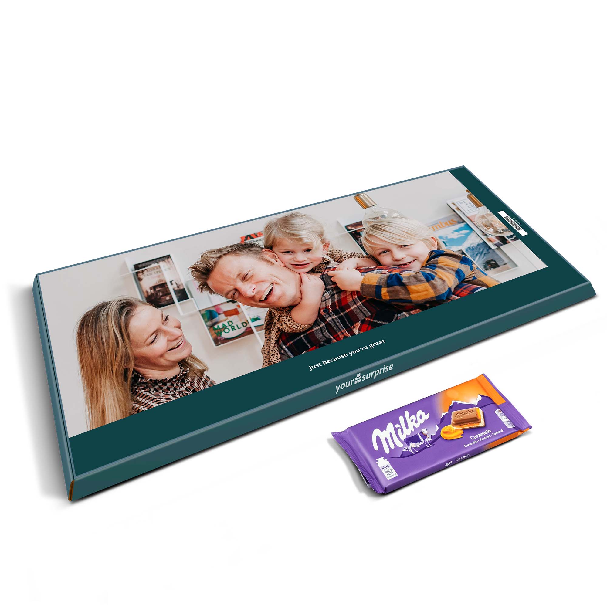 Diese XXL-Weihnachtsschokoladetafel enthält nicht weniger als 9 Tafeln Milka-Schokolade. Ein echtes Unikat mit Ihrem Wunschfoto und/oder Namen!