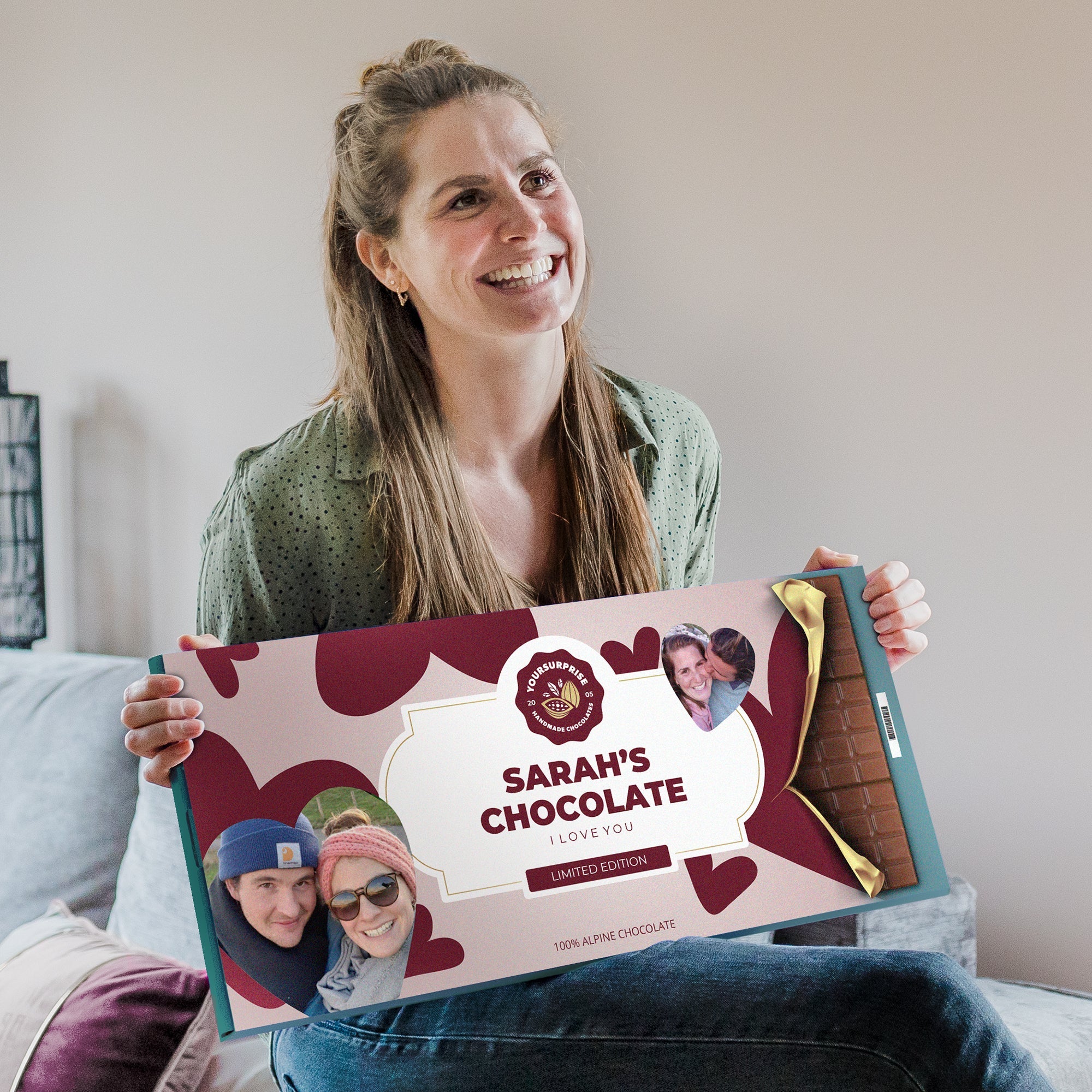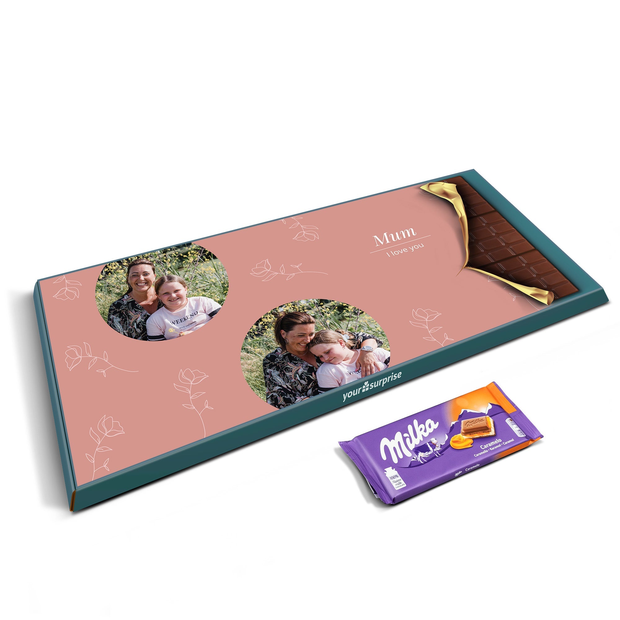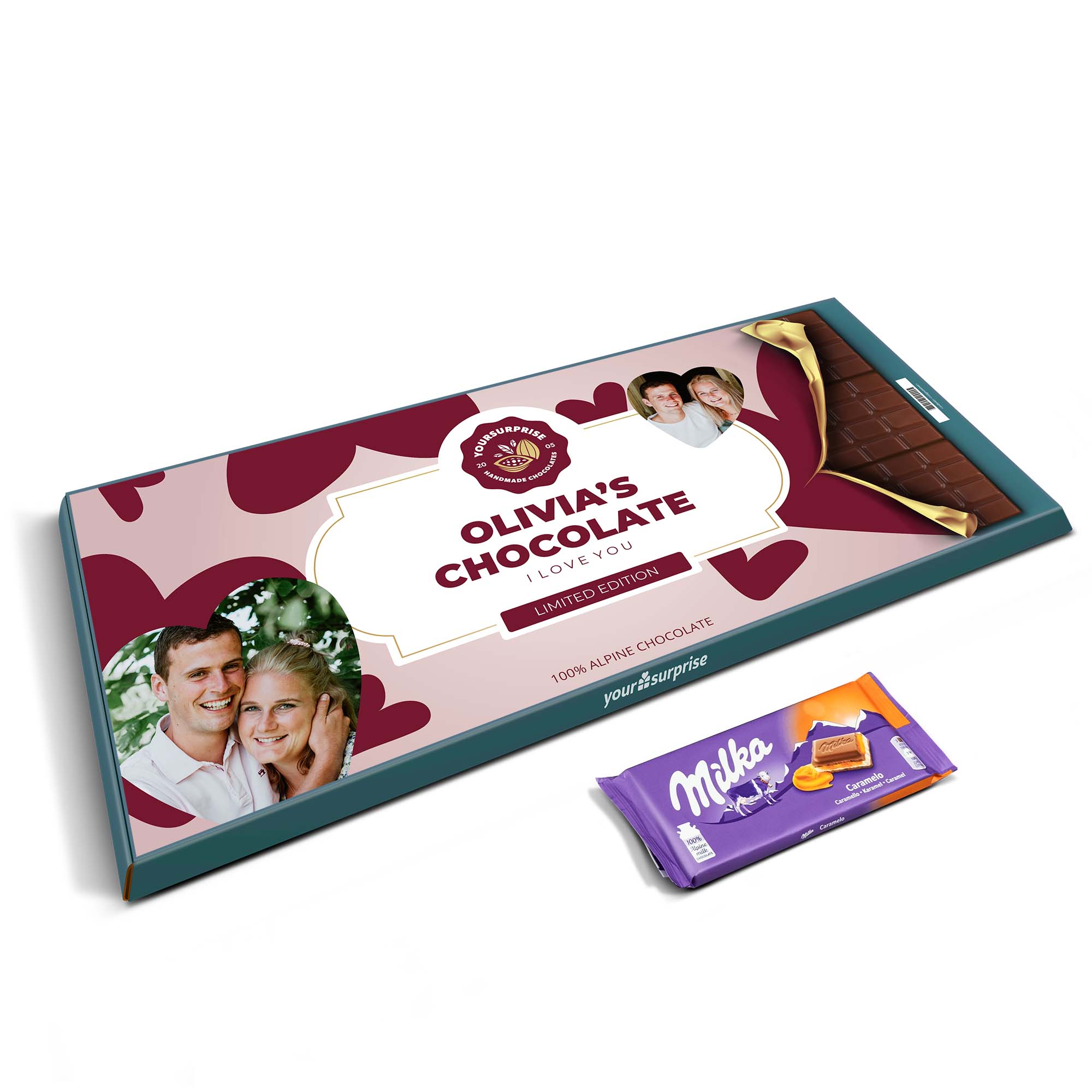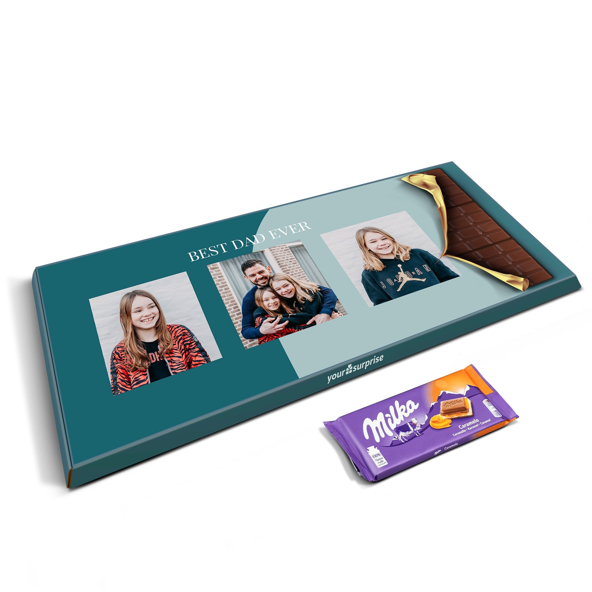 Diese XXL-Weihnachtsschokoladetafel enthält nicht weniger als 9 Tafeln Milka-Schokolade. Ein echtes Unikat mit Ihrem Wunschfoto und/oder Namen!