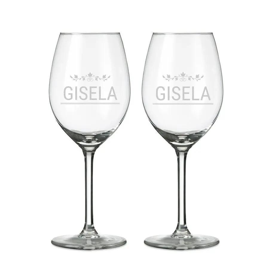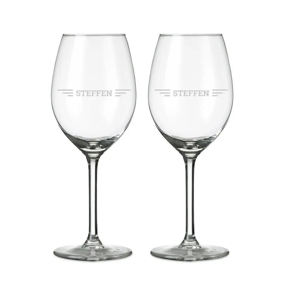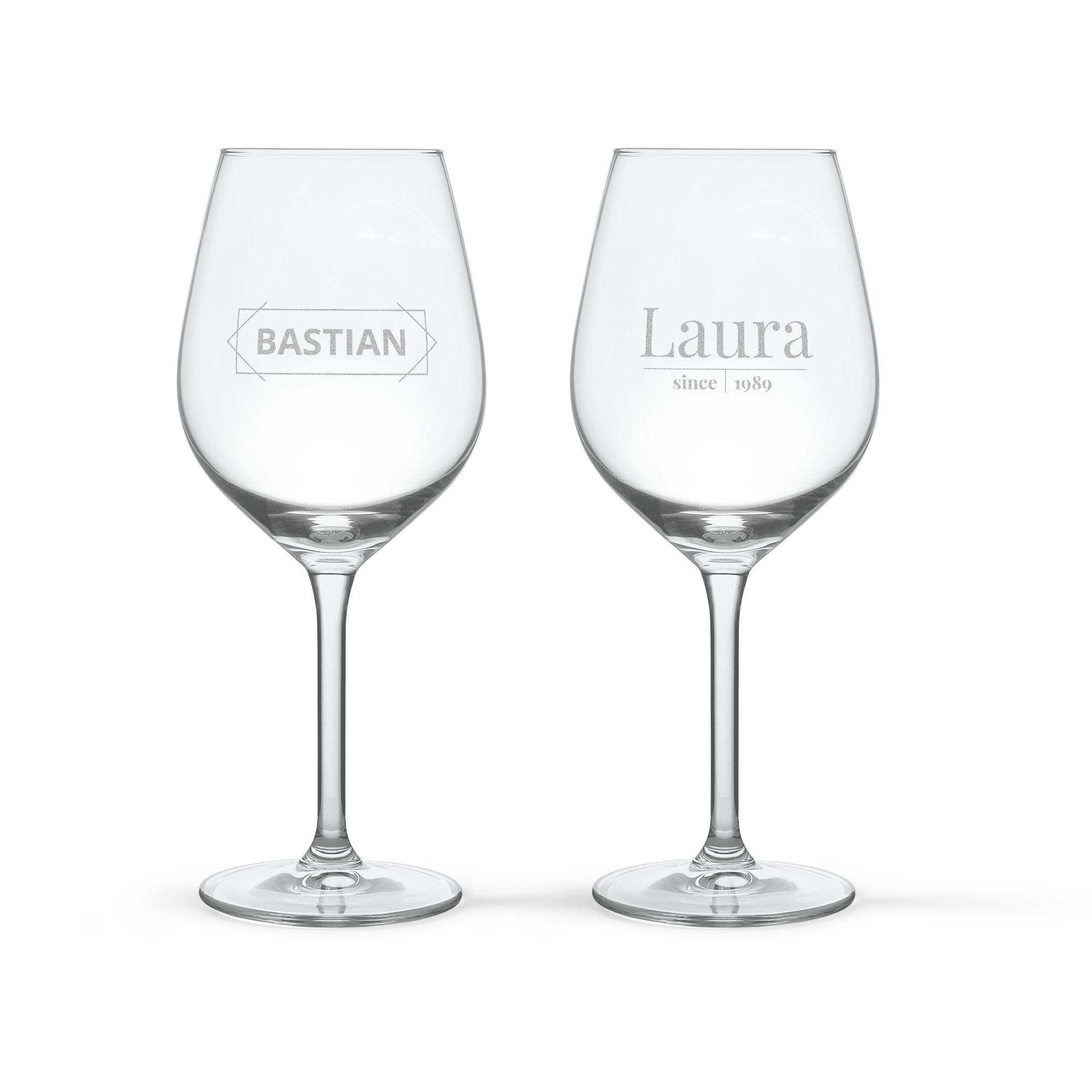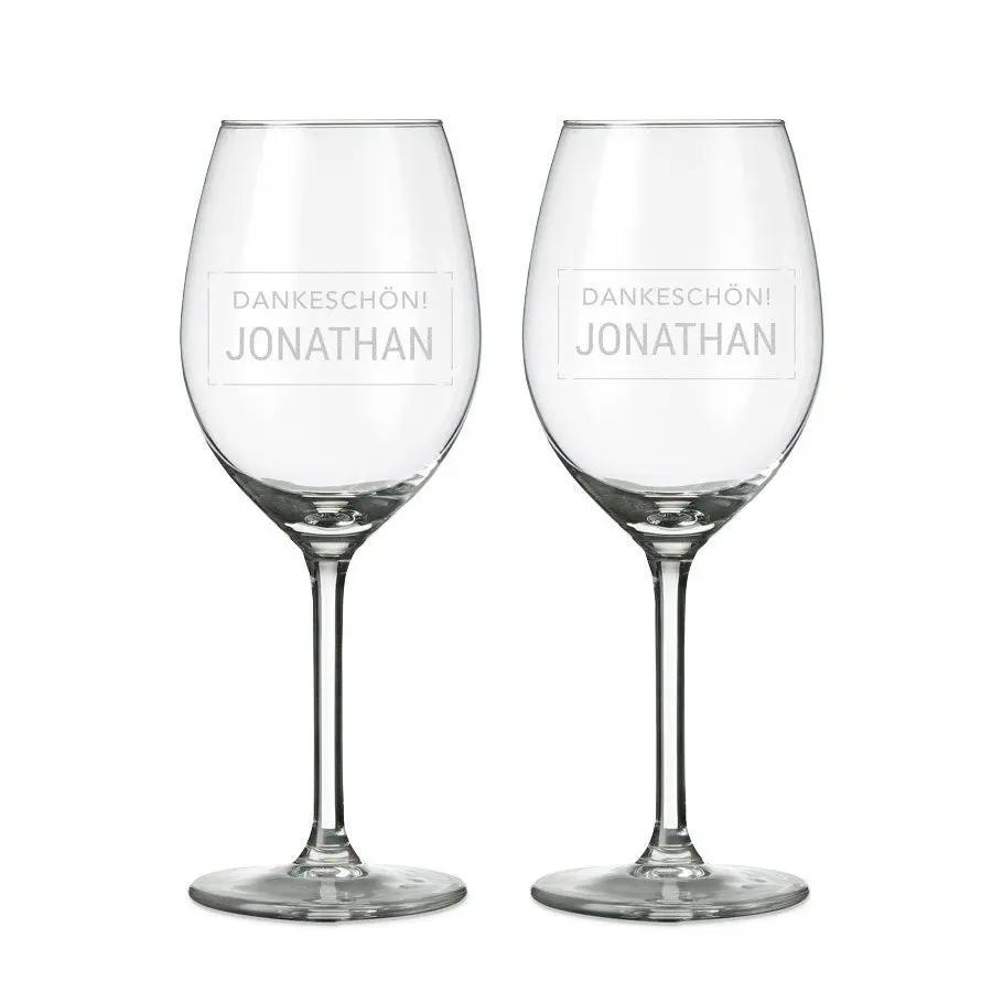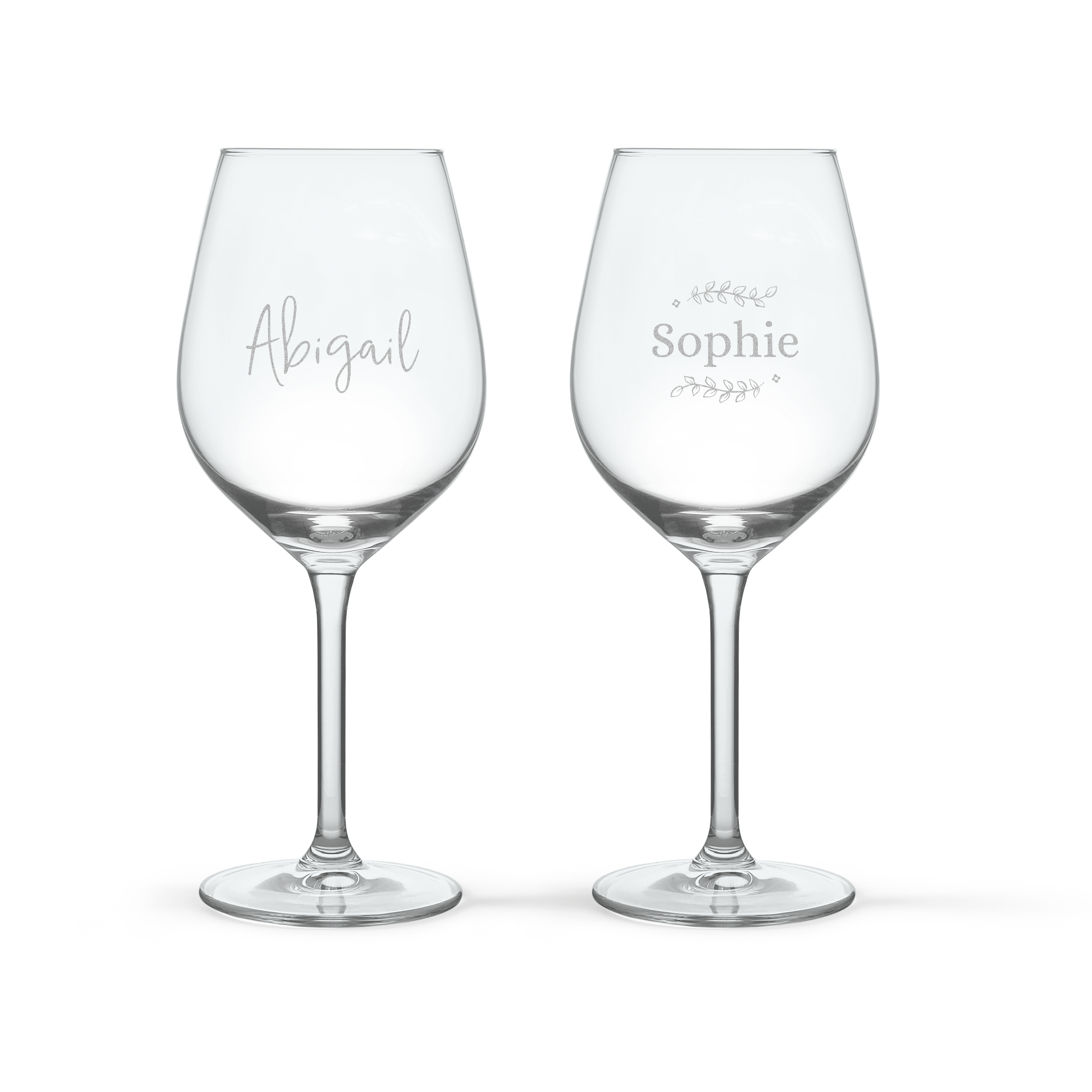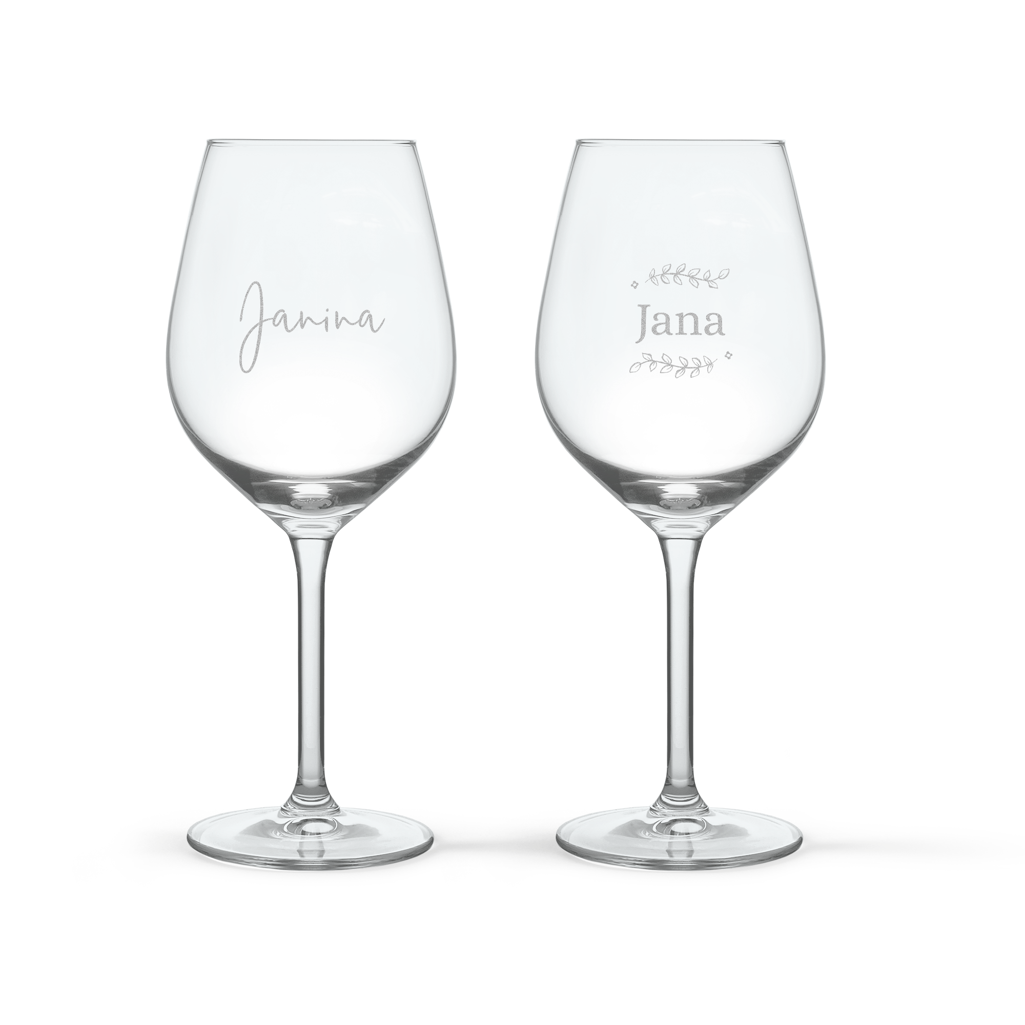 2 wunderschöne Weingläser mit der Gravur Ihres eigenen Textes oder Namens.