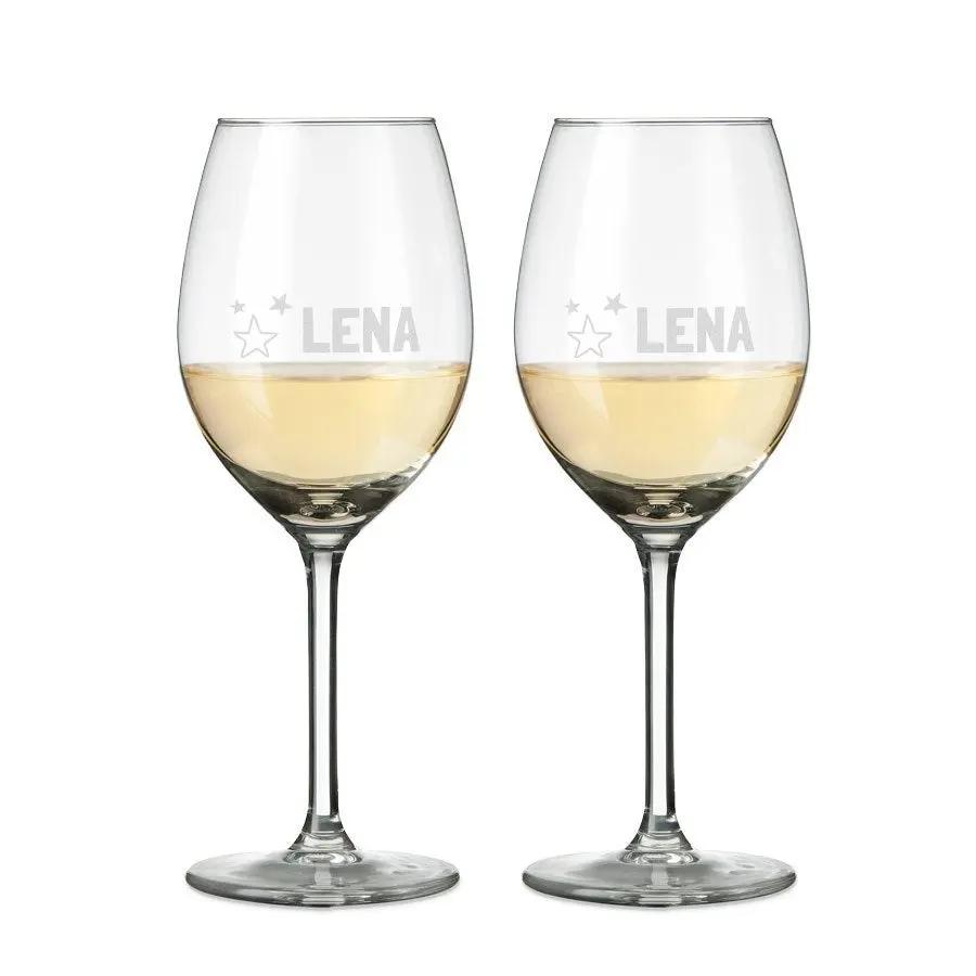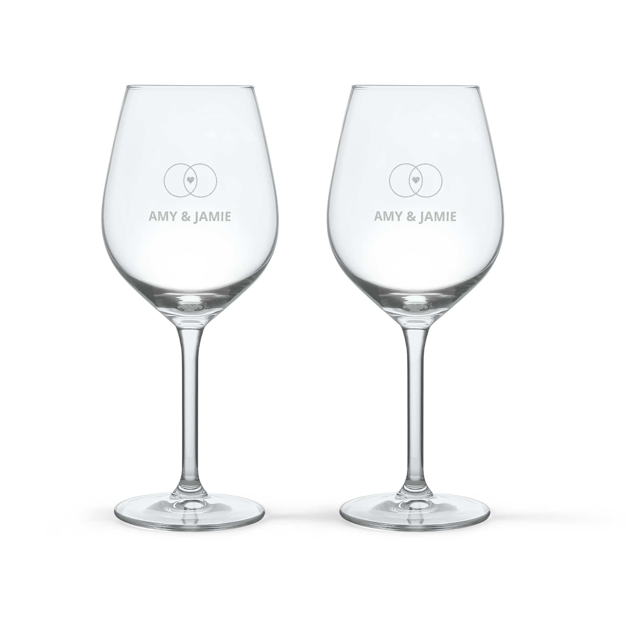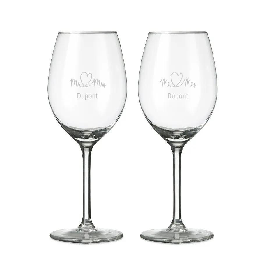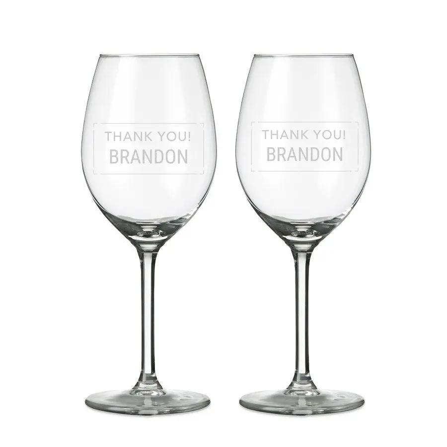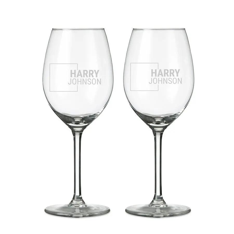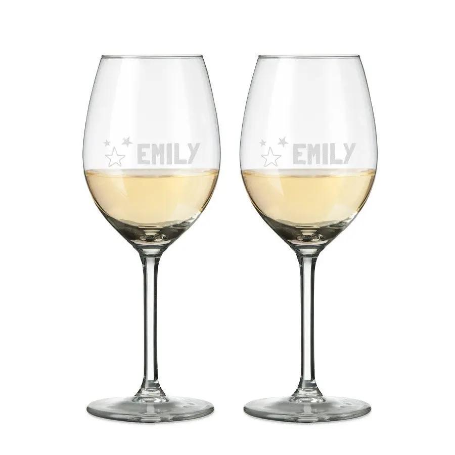 2 wunderschöne Weingläser mit der Gravur Ihres eigenen Textes oder Namens.
