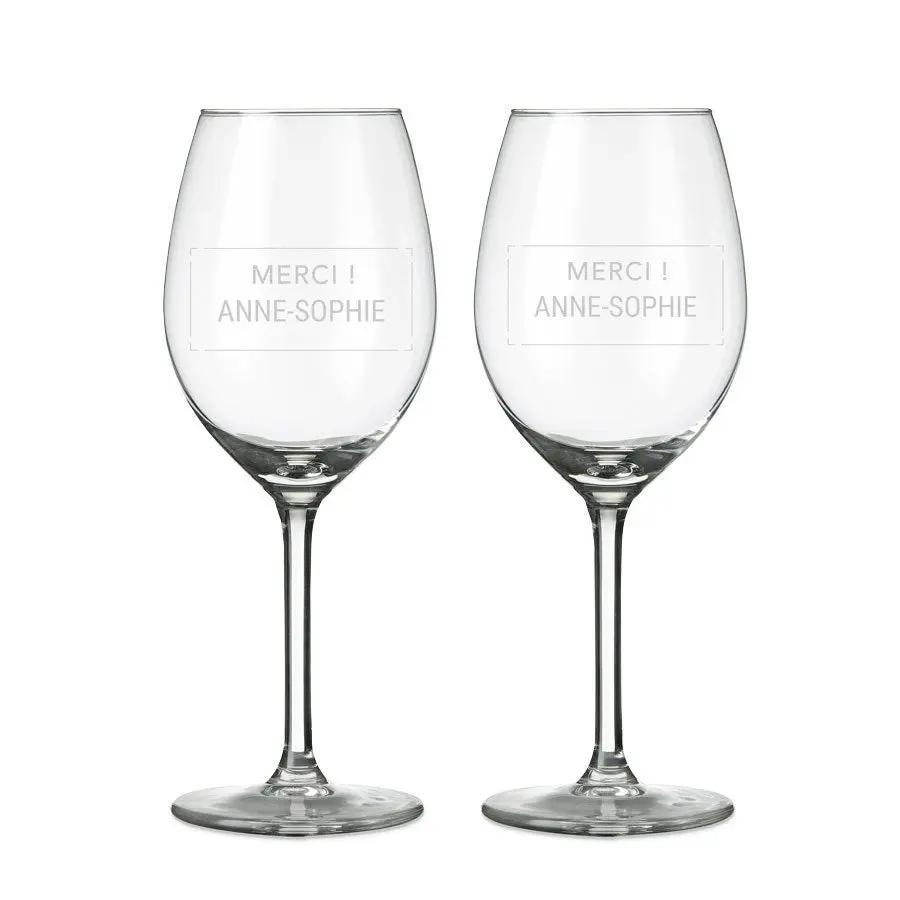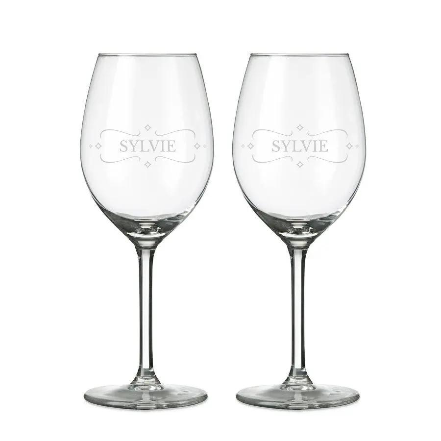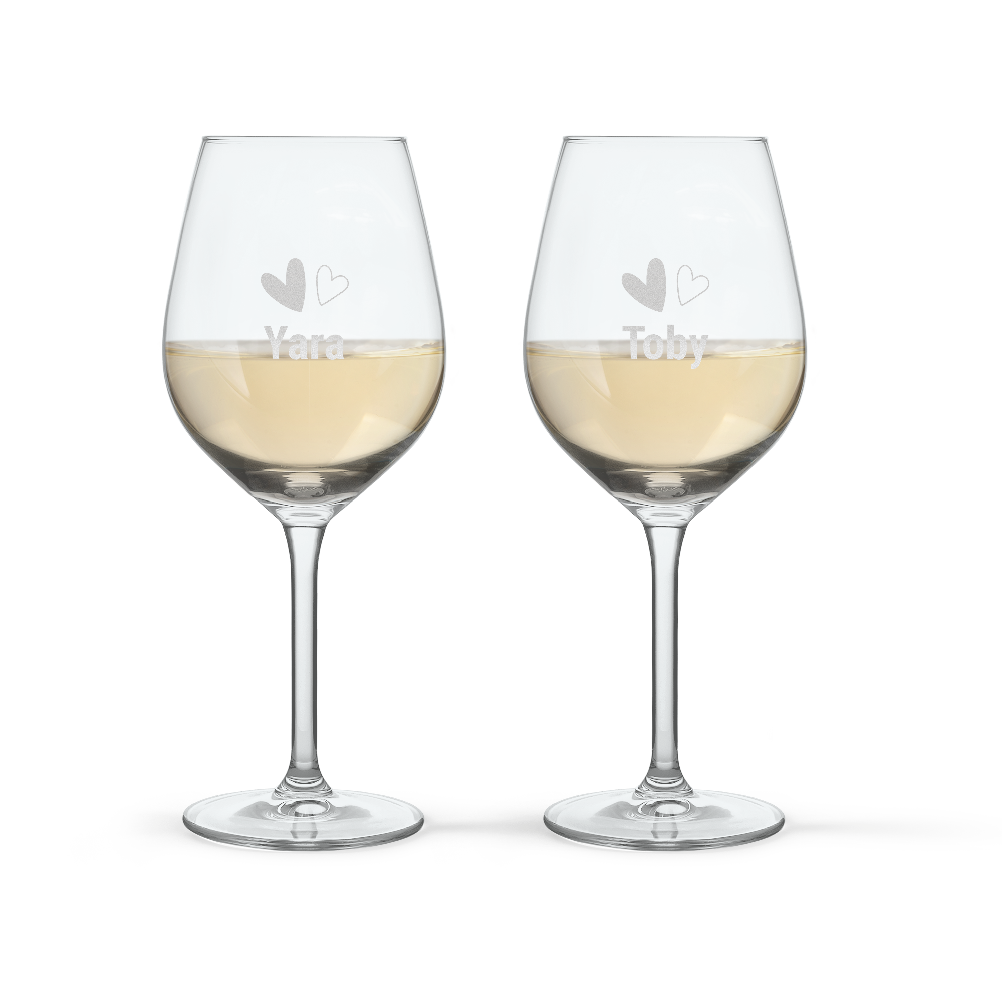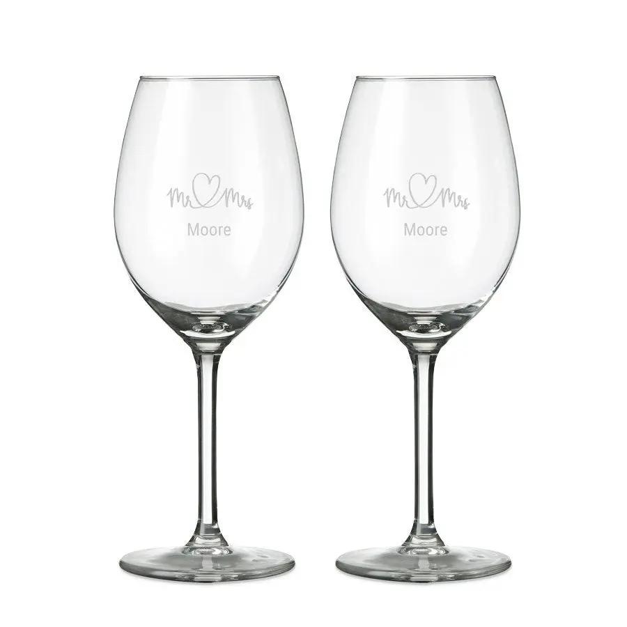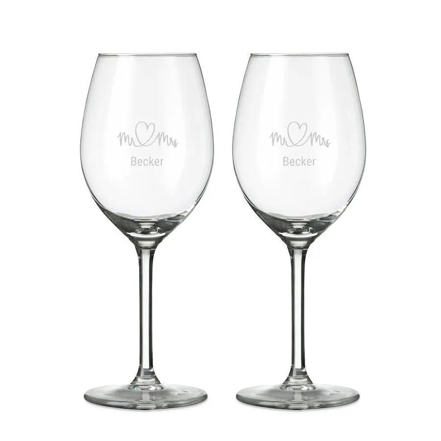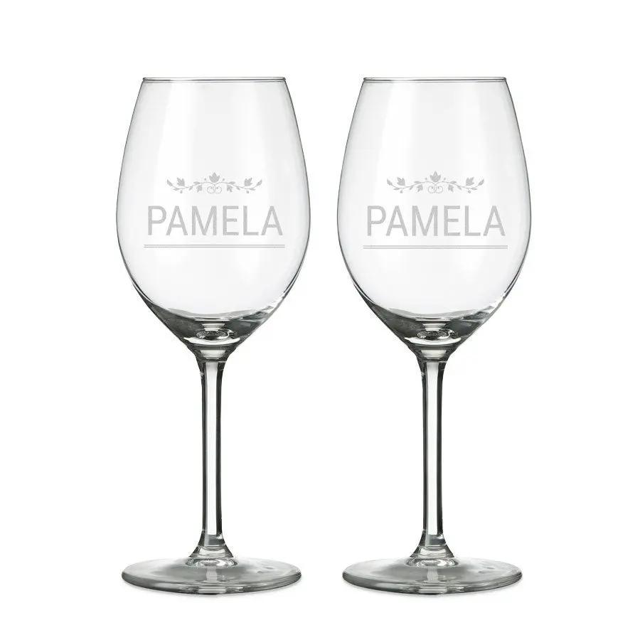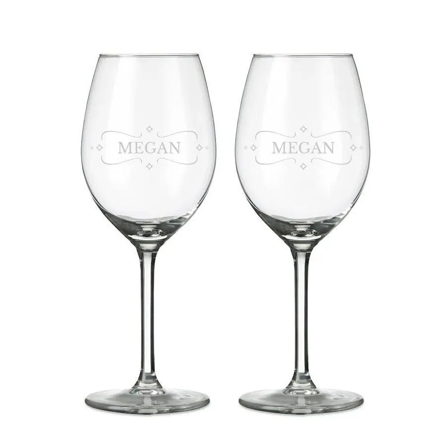 2 wunderschöne Weingläser mit der Gravur Ihres eigenen Textes oder Namens.