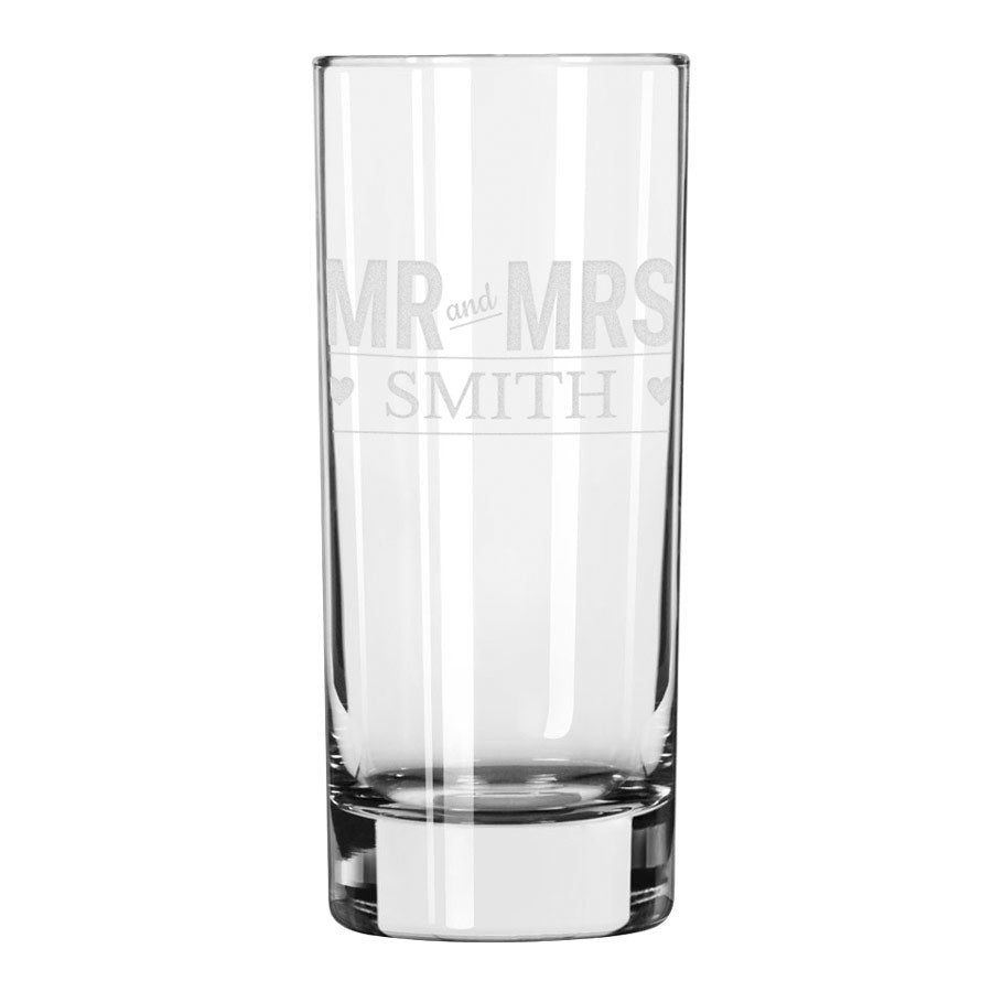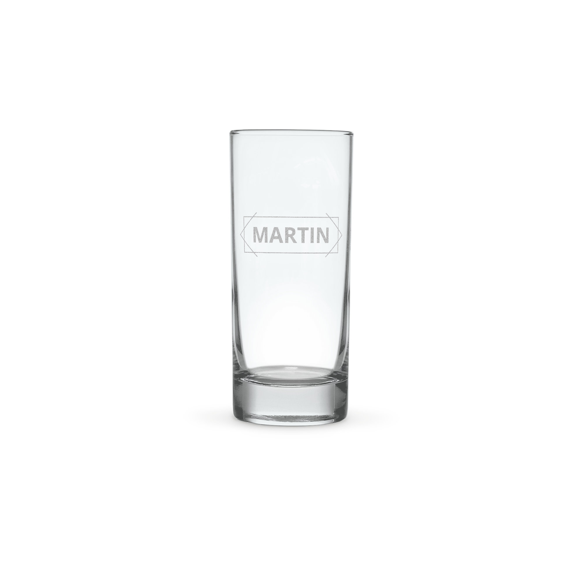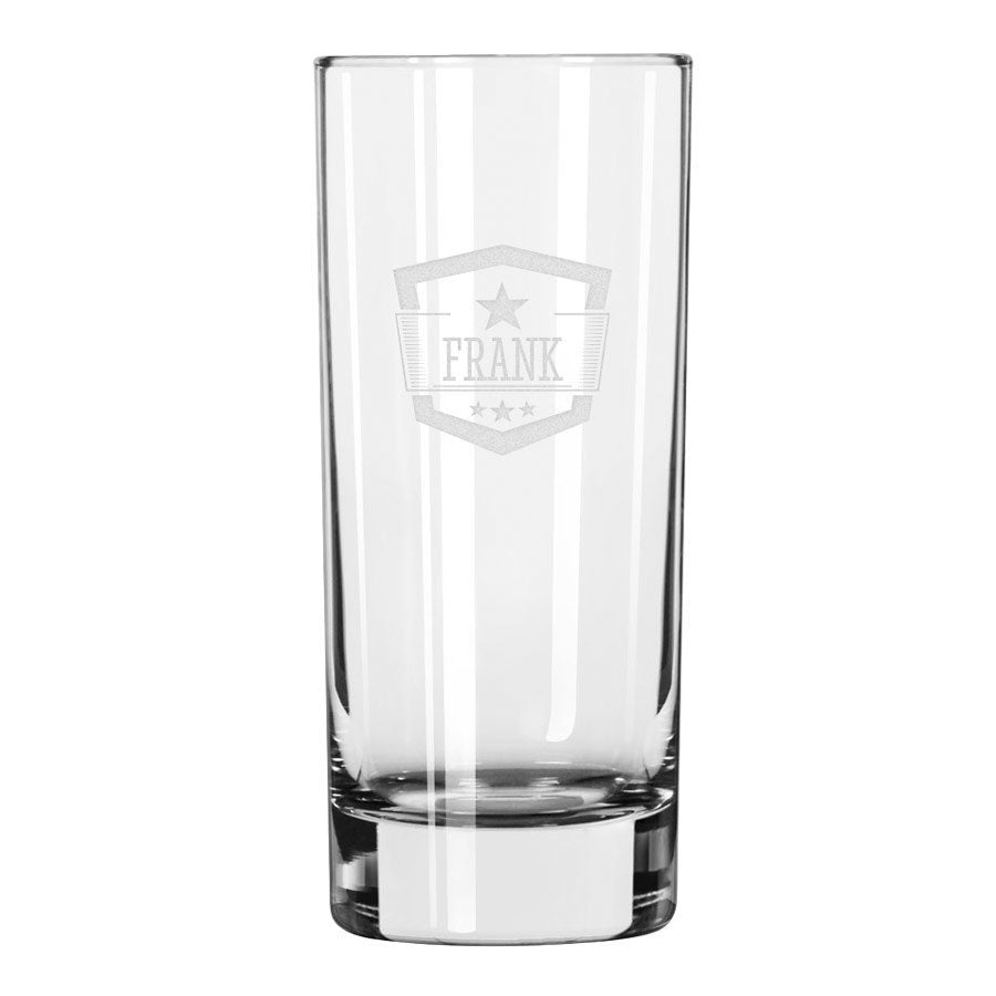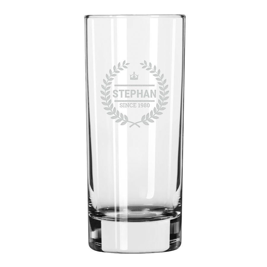 Ein hohes Longdrinkglas mit einer Gravur Ihres persönlichen Textes und einem schönen Bild!