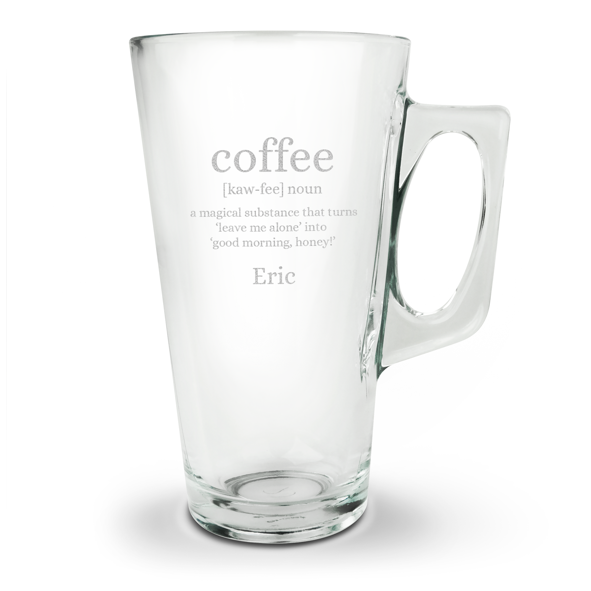 Lassen Sie sich ein wunderschönes Kaffeeglas mit Ihrem Wunschtext gravieren! Ein perfektes Geschenk für jeden Kaffeeliebhaber. Auch als Set erhältlich.