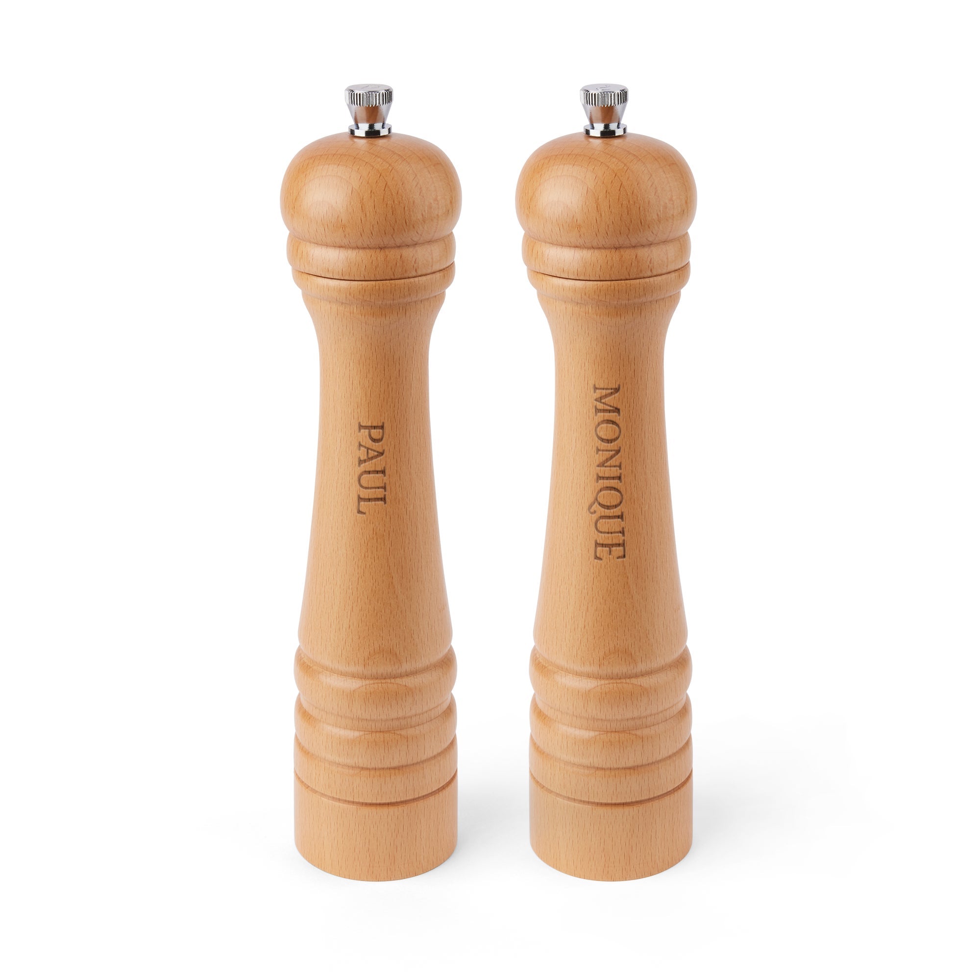 Erweitern Sie Ihre Küchenutensiliensammlung mit unserer exquisit gefertigten personalisierten Pfeffermühle aus Holz. Diese Pfeffermühle aus hochwertigem Buchenholz besticht durch ihr elegantes Design und ihre herausragende Funktionalität. Dank ihres robusten Mahlwerks verspricht sie Effizienz und Langlebigkeit. Das Highlight ist die Personalisierungsoption: Sie können einen Namen Ihrer Wahl eingravieren und so eine charmante, persönliche Note verleihen. Sie eignet sich ideal für Pfeffer und Salz und ist ein vielseitiges Werkzeug für jeden Koch. Das edle Naturfinish passt zu jeder Kücheneinrichtung und macht sie zu einem hervorragenden Geschenk für Einweihungsfeiern, Hochzeiten oder für kulinarische Liebhaber. Diese Pfeffermühle ist leicht nachzufüllen und zu verwenden und vereint Funktionalität mit Stil. Bitte beachten Sie, dass die Holzmaserung aufgrund des natürlichen Materials variieren kann, was jedem Stück einen einzigartigen Charakter verleiht. Genießen Sie die Kunst des Kochens mit einer Mühle, die sowohl ein Zeugnis handwerklicher Handwerkskunst als auch ein persönliches Andenken ist.