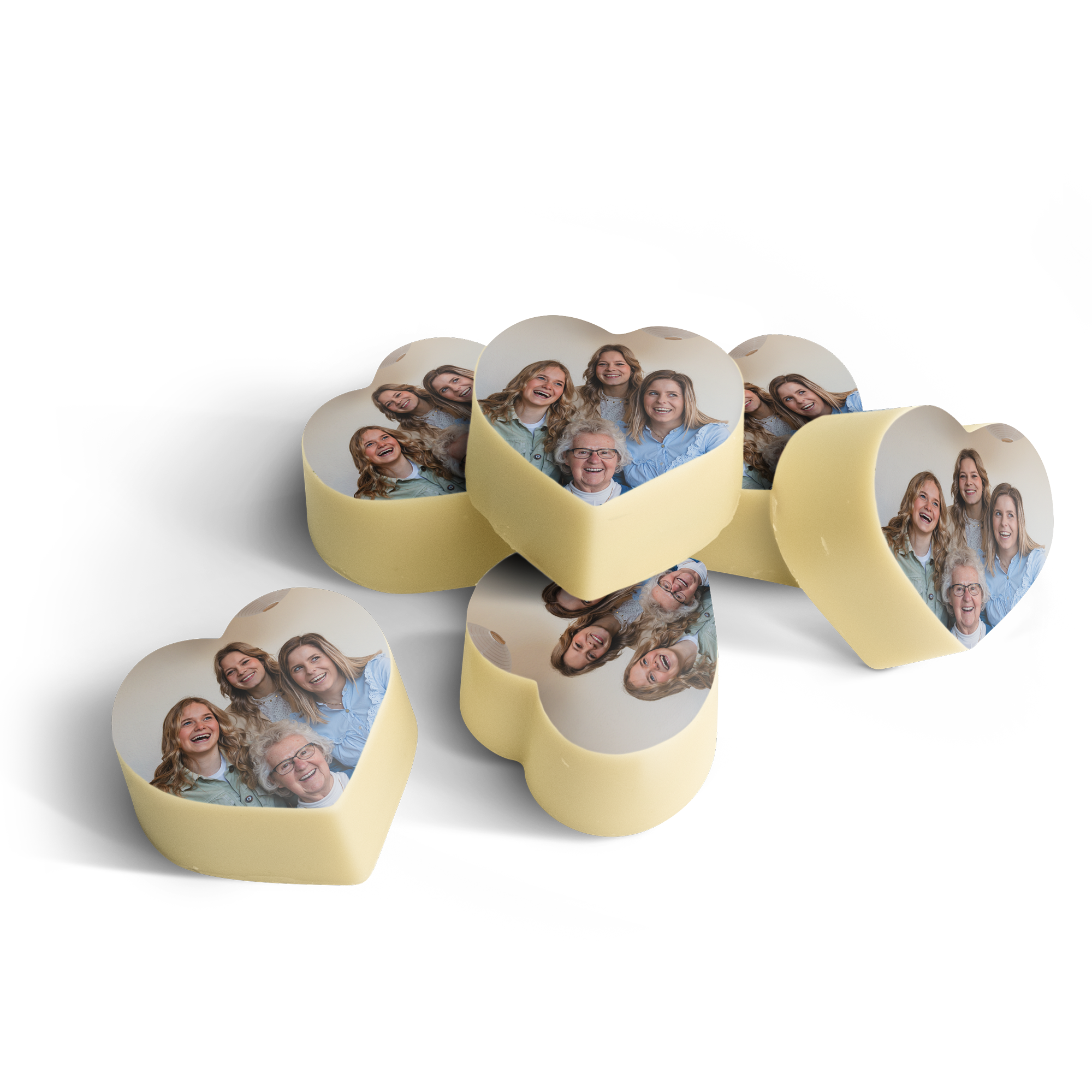 Mehr Informationen zu den personalisierten herzförmigen Schokoladenpralinen:Menge: 24er-SetSchokolade: Milchschokolade mit einer Schicht weißer Schokolade obendraufForm: herzförmigMaße pro Schokolade: 2,7 x 1,6 cm, kann je nach Schokolade leicht variierenFüllung: PralinePersonalisierung: mit Foto oder Logo bedrucktDruck: essbarer Druck in VollfarbeBei Außentemperaturen von 25 Grad Celsius oder mehr können wir die Qualität der Schokolade nicht garantieren.Wichtig: Es ist nicht möglich, für jede einzelne Schokolade unterschiedliche Fotos zu verwendenAufbewahrungshinweis: Kühl und dunkel bei 14-18°C bis zu 10 Wochen lagerfähig. Allergiehinweis: Enthält Soja, Milch und kann Spuren von Nüssen und Gluten enthalten. Zutaten: Schokoladenpralinen mit Haselnussfüllung und essbarem Druck: Zucker, Haselnüsse, Kakaomasse, Kakaobutter, Vollmilchpulver, Emulgator (Sojalecithin), natürliches Vanillearoma. Essbarer Druck: Maisstärke, modifizierte Stärke: E1422, Kartoffelstärke, Wasser, Hühnereiweißpulver, Magermilchpulver, Olivenöl, Salz, Feuchthaltemittel E422, Emulgator: E433, Farbstoff: E102, E110, E122: Kann Aktivität oder Konzentration bei Kindern beeinträchtigen, E133, E151. Überzug: E904