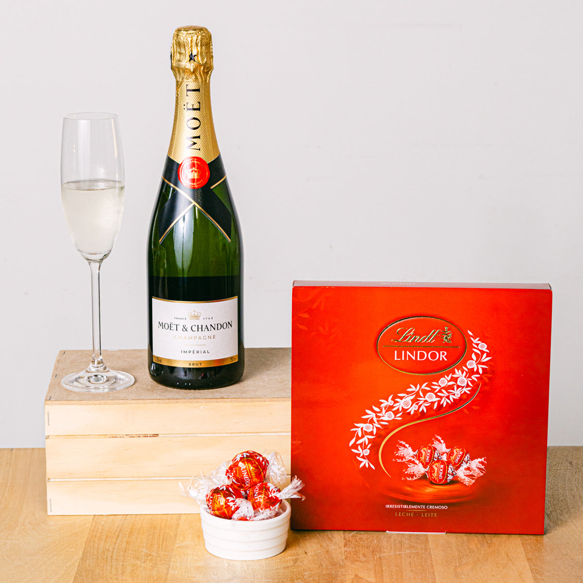 Rosen, Lindt Mini Pralinés (44g), Lindt Du Confisseur (250g), Lindt Herz 160g, Freixenet Cava Carta Nevada (75cl).