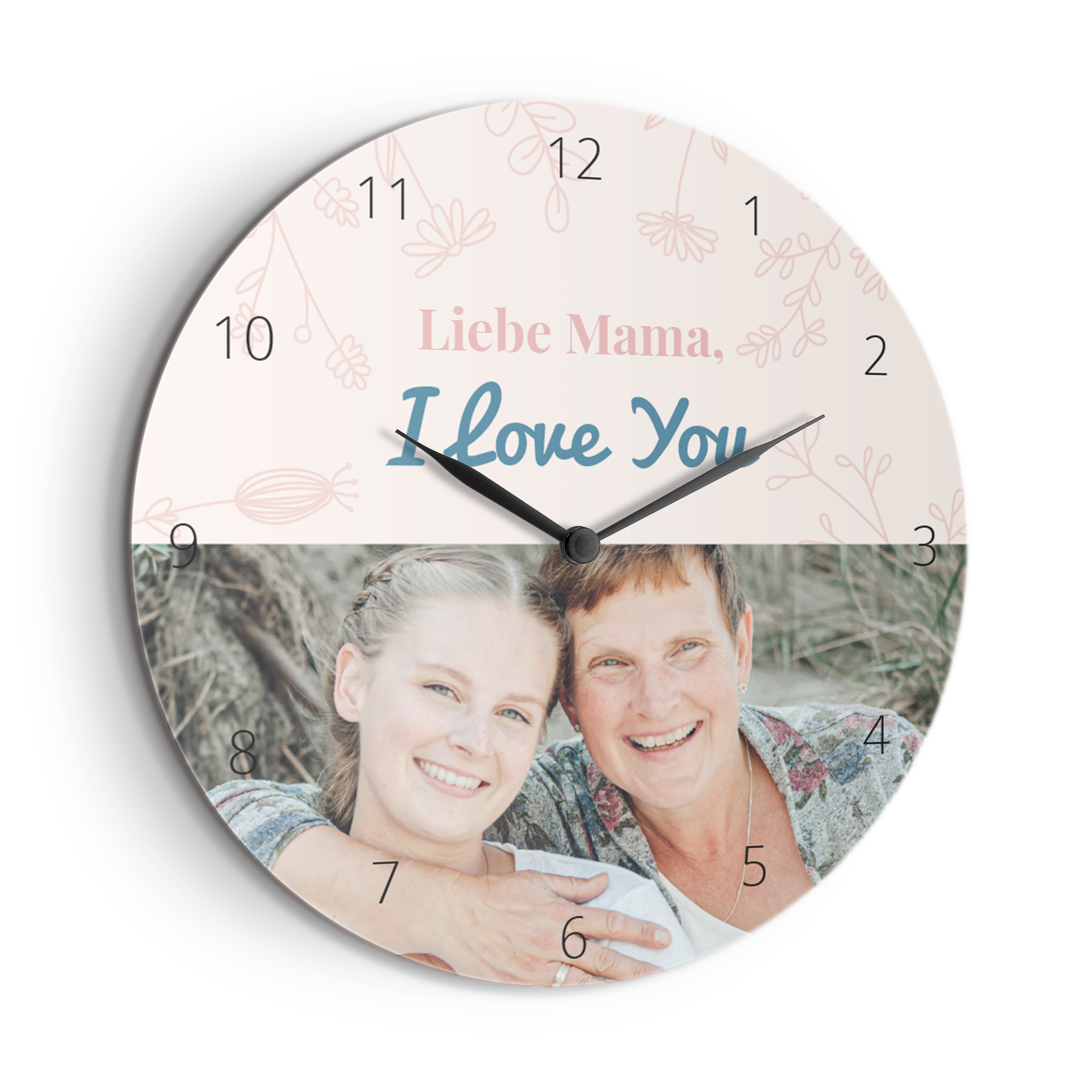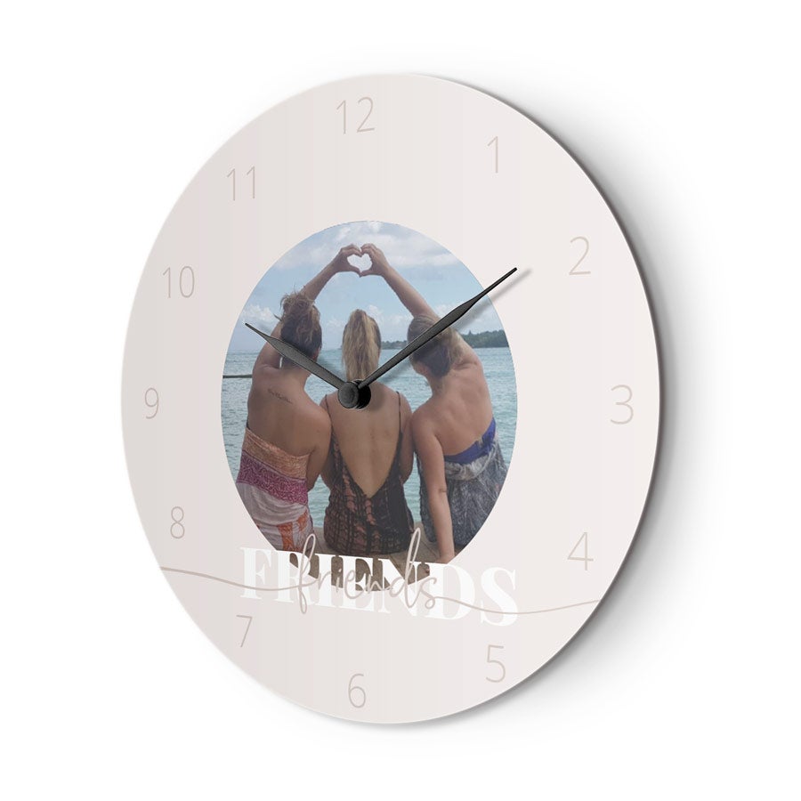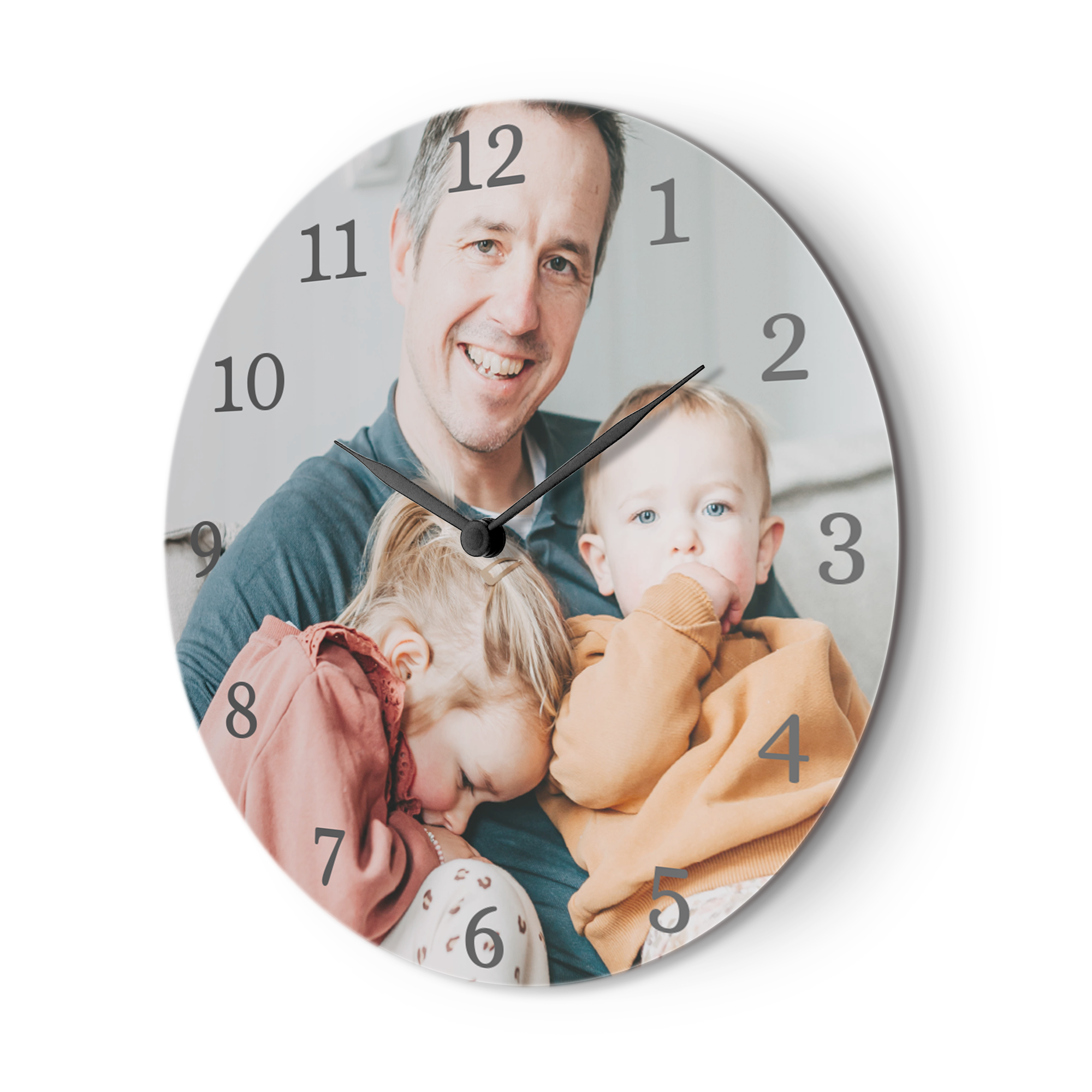 Weitere Informationen zur personalisierten Hartfaseruhr:Form: rundDurchmesser: 29 cm / 11,4"Material: Hartfaserplatte mit gehärteter BeschichtungPersonalisierung: mit Foto und/oder TextDruck: Vollfarbe in HD-QualitätExtra: Batterien enthalten
